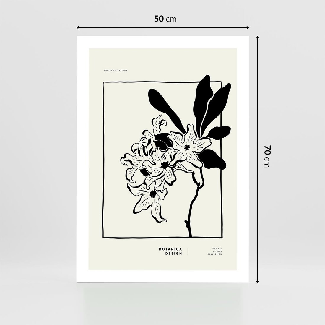 Odkryj piękno natury w tym minimalistycznym obrazie. Czarny kontur przedstawiający prostą formę kwiatu emanuje elegancją i spokojem. Ta grafika w duchu minimalizmu doskonale wkomponuje się w różnorodne wnętrza, dodając im delikatny akcent roślinności i subtelnej harmonii.