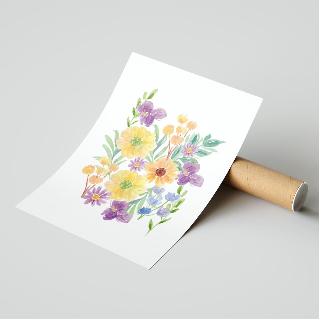 Plakat bez ramy 50x70 - Kwiatowe Wibracje - akwarelowe polne kwiaty, minimalistyczny plakat