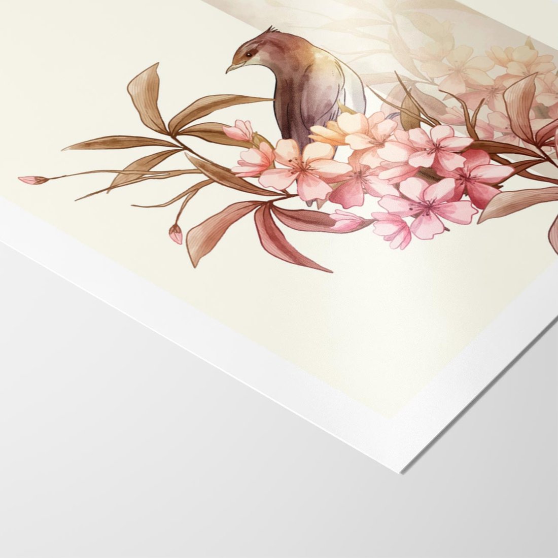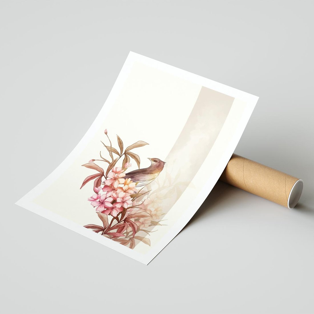 Plakat bez ramy 50x70 - Kwiatowe Zanurzenie - japońska sztuka, ptak