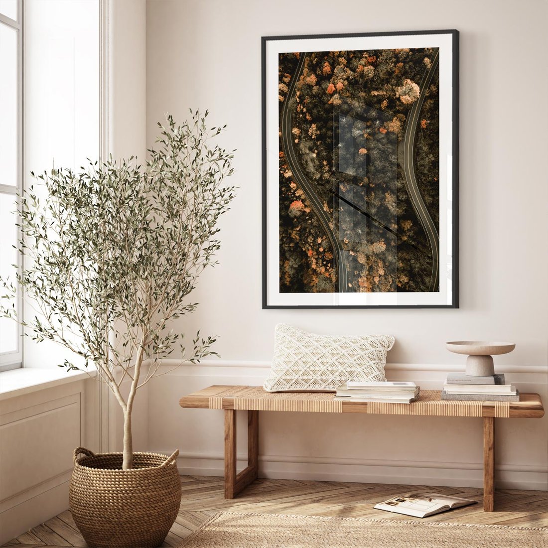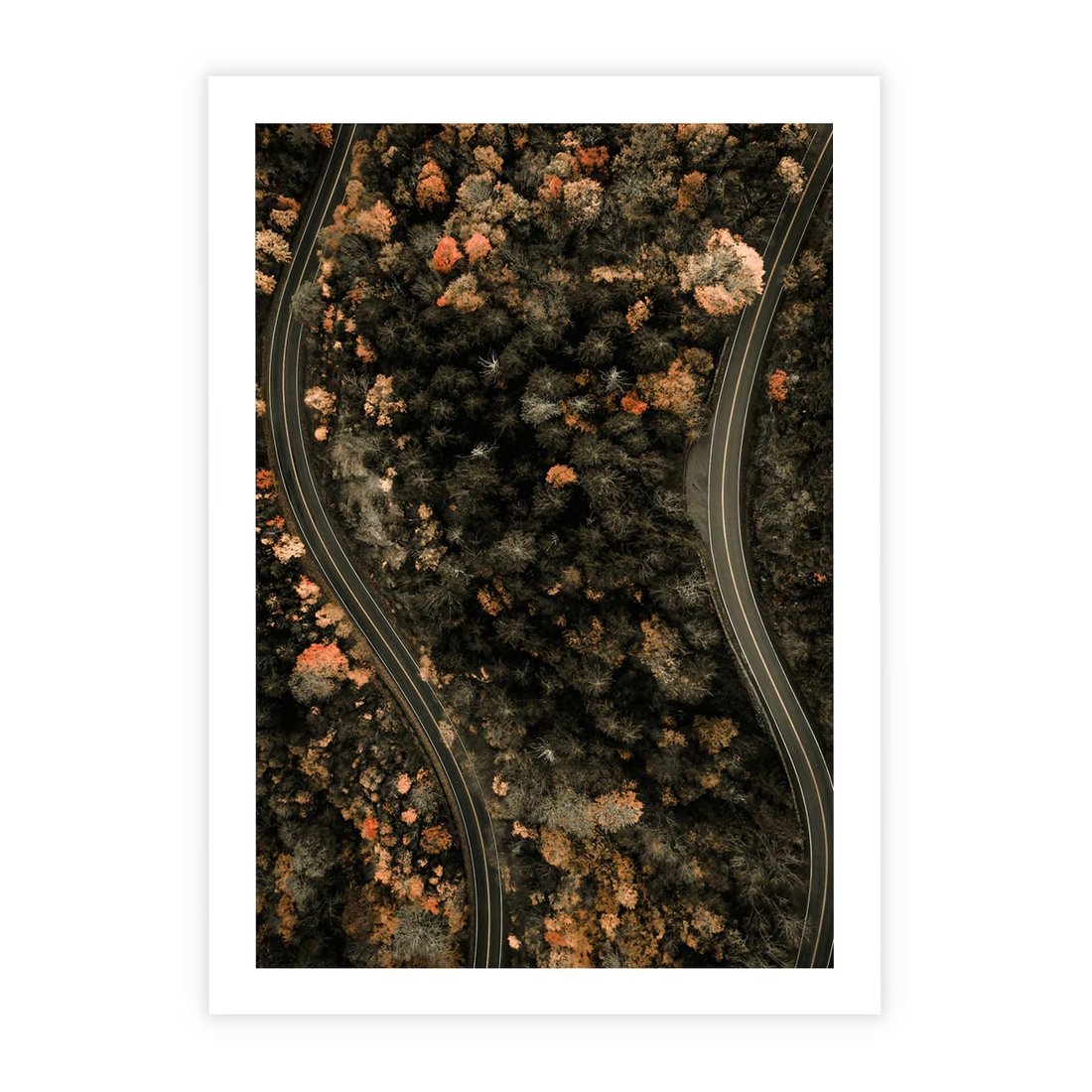 Plakat bez ramy 50x70 - Las i Droga w Kolorach Jesieni - droga, ujęcie z góry