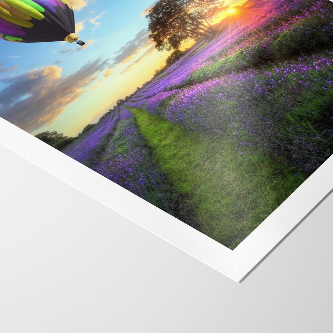 Przenieś się w świat lawendowych pól dzięki temu ujmującemu obrazowi z balonami. Lawenda, ich fioletowe kwiaty i lekkość balonów tworzą aurę spokoju i marzeń. Ta kompozycja dodaje romantycznego klimatu i sielankowej atmosfery, idealna dla miłośników przyrody i sielskich krajobrazów.