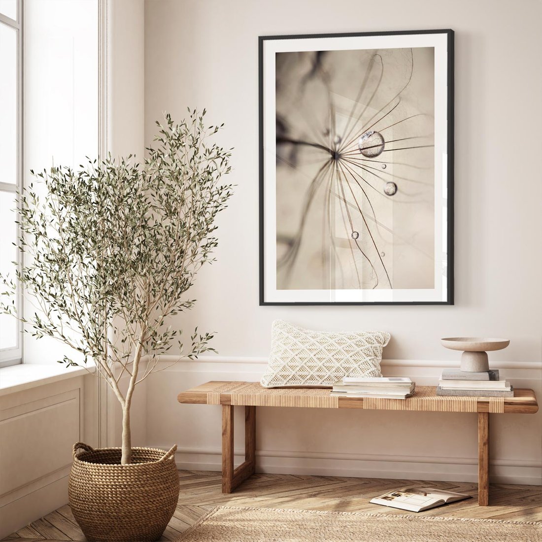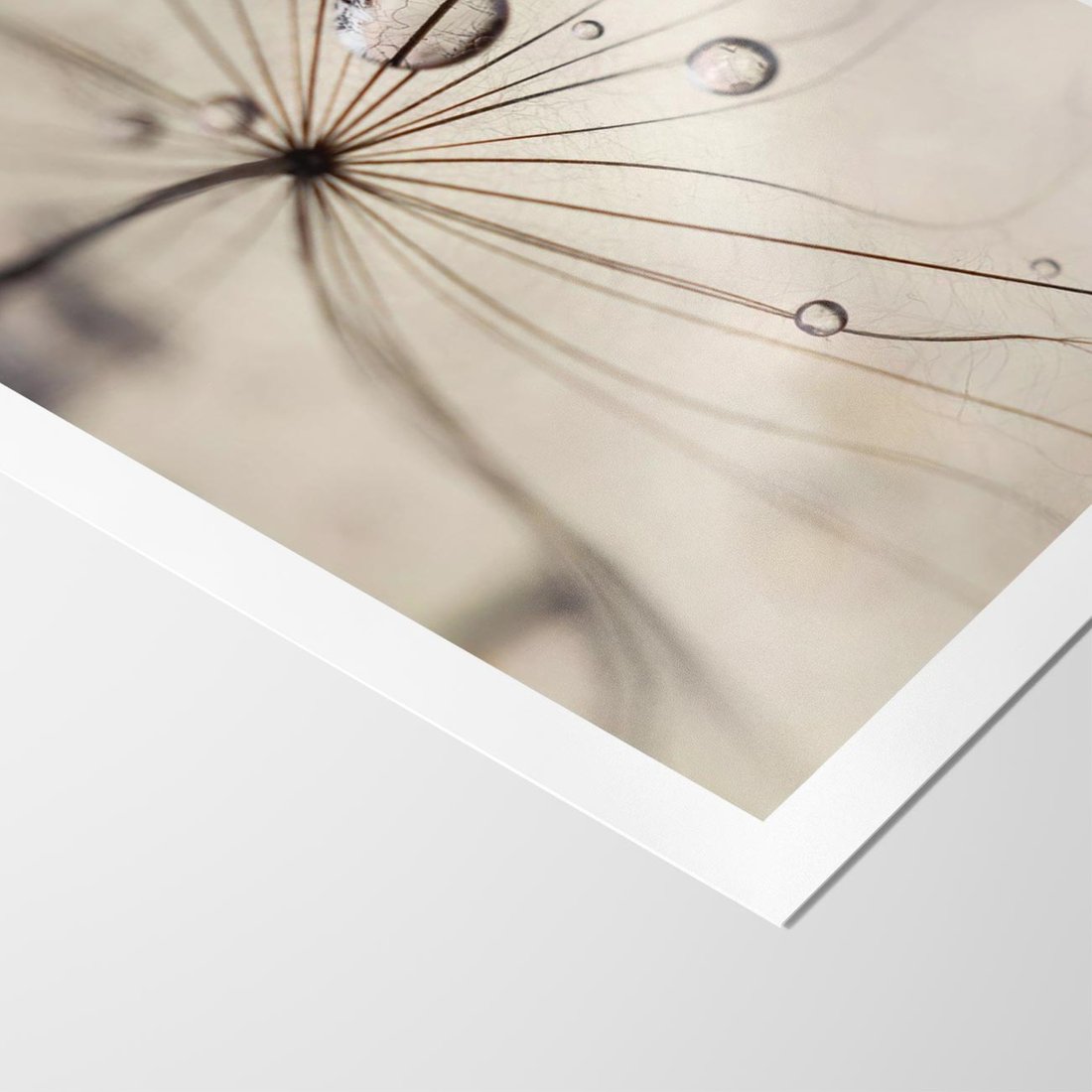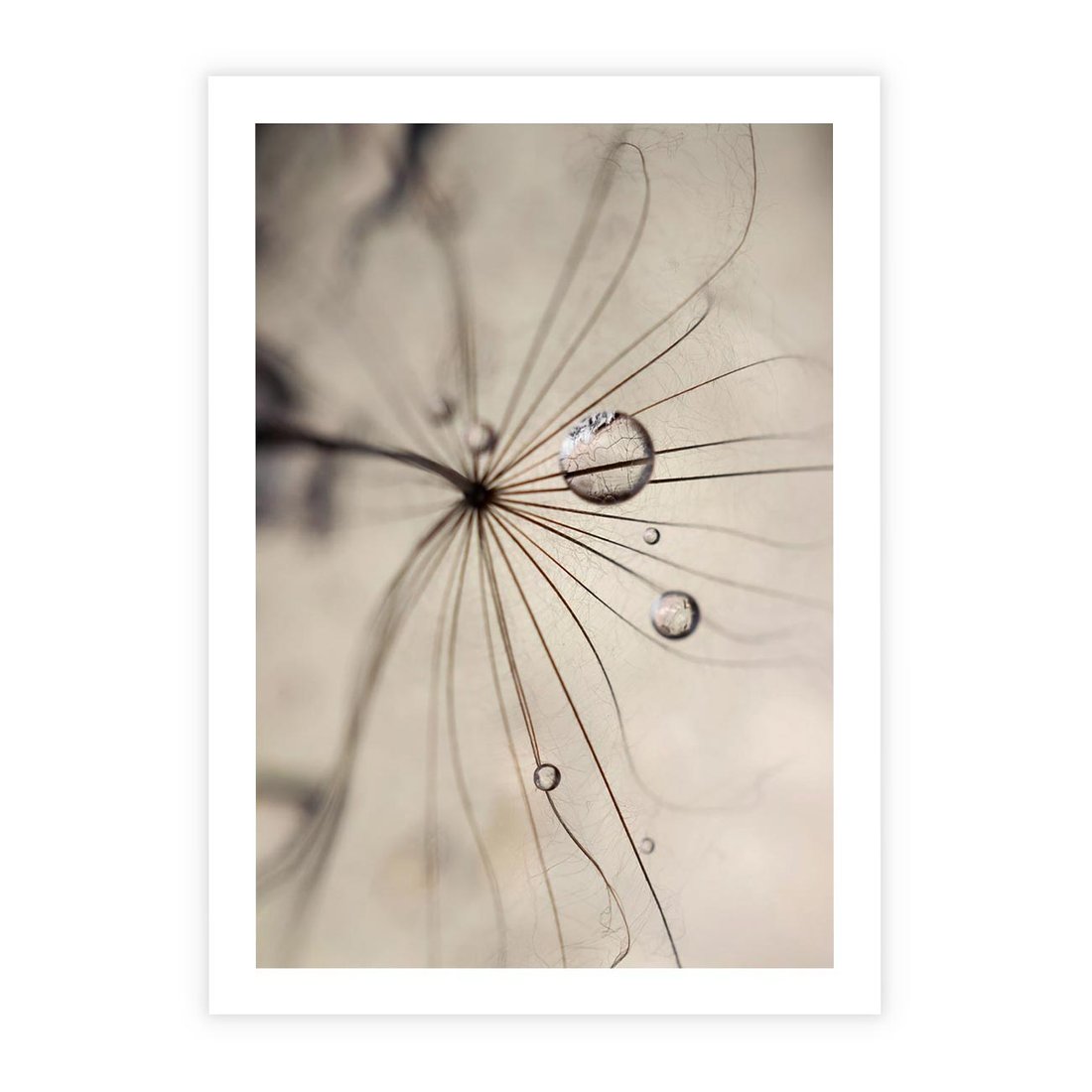 Plakat bez ramy 50x70 - Makro Uroda: Kropla na Dmuchawcu - zbliżenie makro, kropla wody na ziarenku dmuchawca