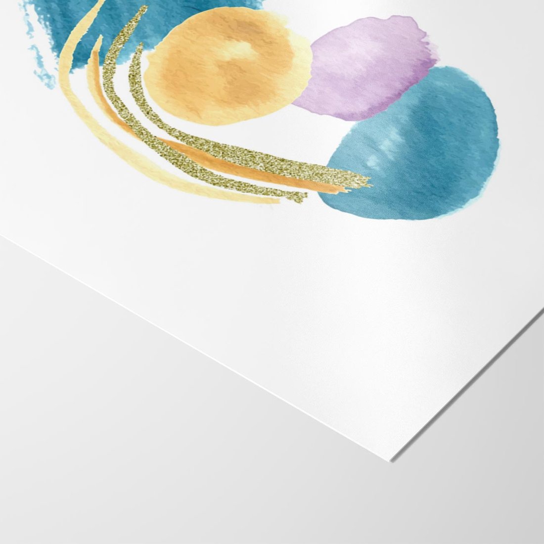 Nasz minimalistyczny plakat to wyjątkowa abstrakcja, gdzie akwarelowe plamy w odcieniach błękitu harmonijnie łączą się z delikatnymi złotymi kreskami. To spokojne dzieło sztuki, które wprowadzi do Twojej przestrzeni subtelność i elegancję, jednocześnie zachęcając do refleksji nad formą i kolorem.