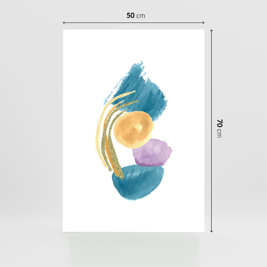 Plakat bez ramy 50x70 - Migocące Barwy Akwarel - akwarelowe plamy w odcieniach błękitu, złote kreski