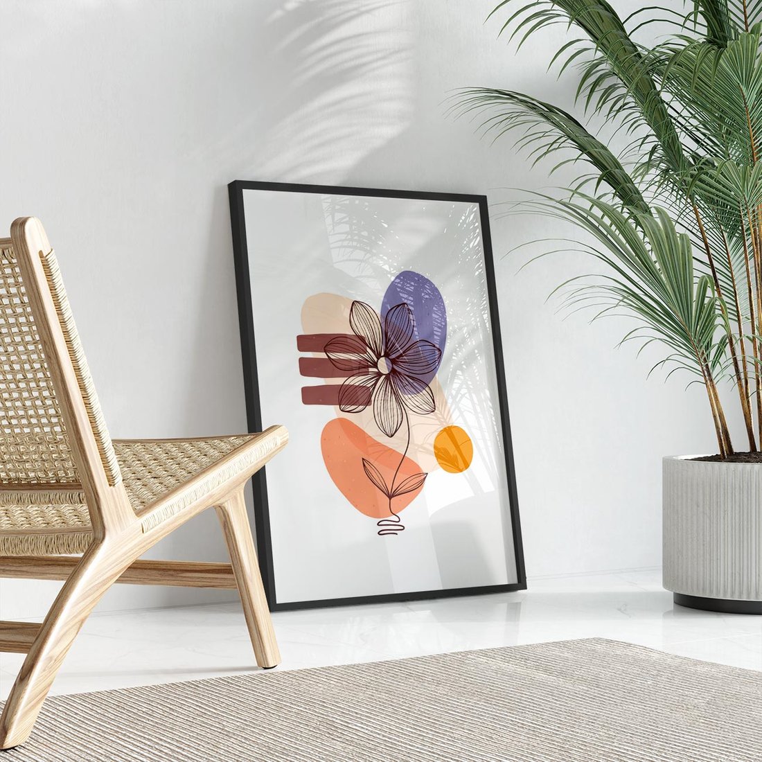 Nasza abstrakcyjna sztuka łączy plamy i kwiat w wyjątkowej grafice. To twórcze połączenie tworzy dynamiczną kompozycję pełną wyrazu i nowatorskiej formy.
