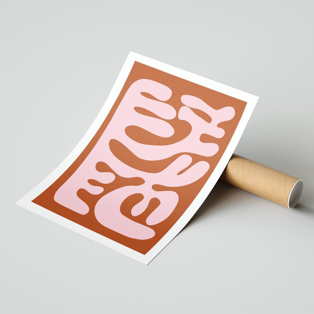 Ten boho plakat prezentuje abstrakcyjny obraz z dziwnymi kształtami na pięknym brązowym tle. Kompozycja łączy w sobie nutę nowoczesności i wyrafinowanego stylu boho, dodając uroku i charakteru do Twojej przestrzeni.