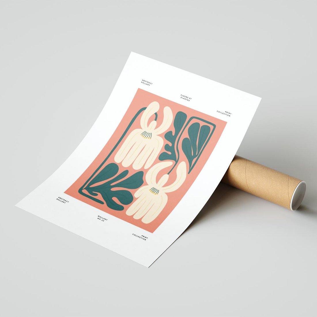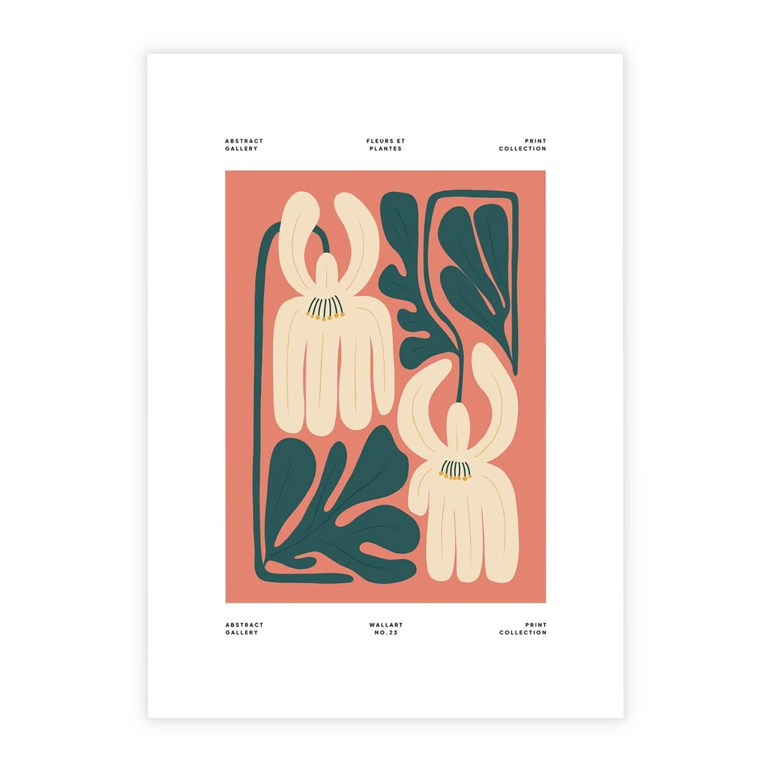 Ten plakat w nowoczesnej abstrakcji ukazuje delikatność kwiatów, wzbogaconą subtelna typografią. Kompozycja emanuje pięknem i wyrafinowanym stylem, tworząc wyjątkową przestrzeń estetycznych doznań.