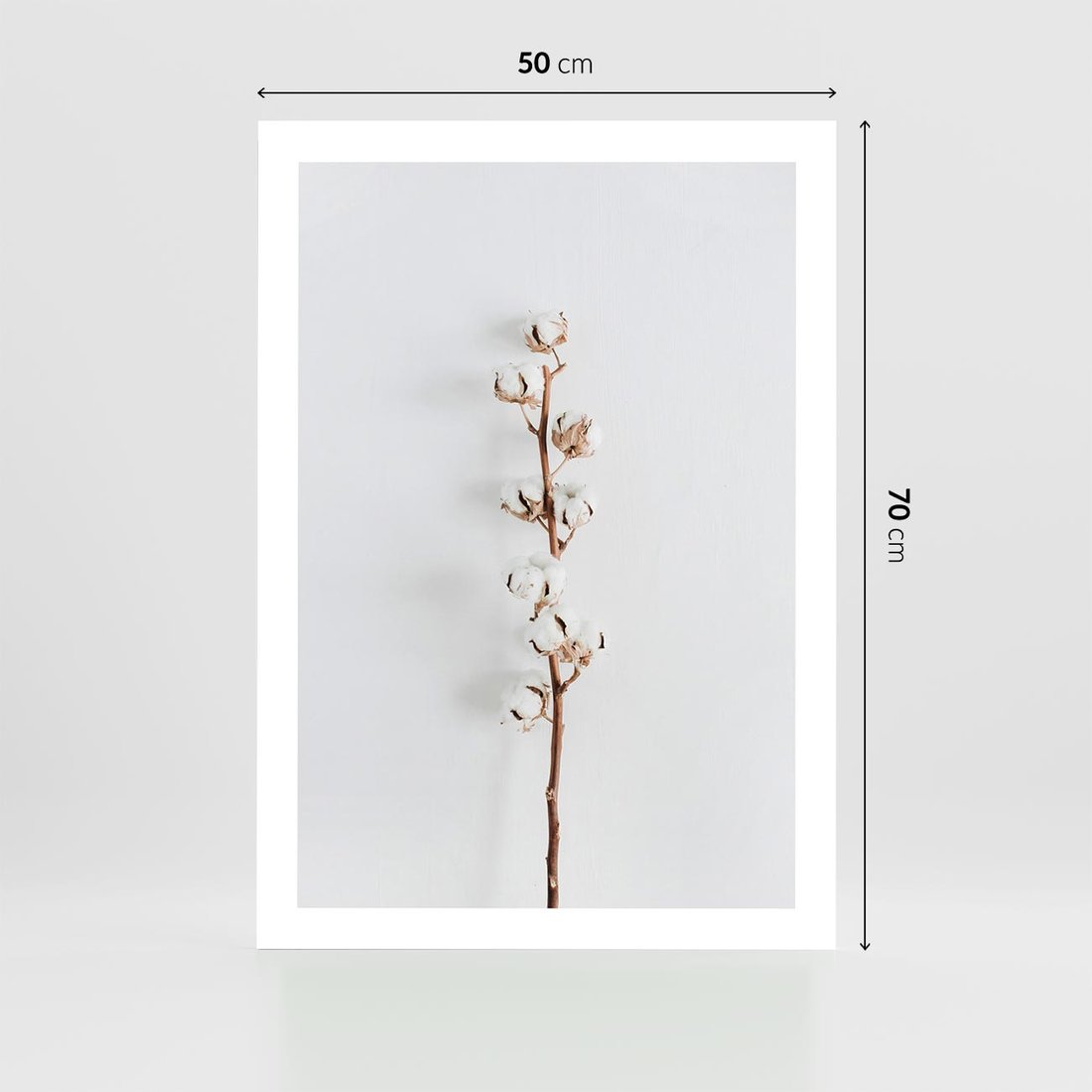Plakat bez ramy 50x70 - Minimalistyczna Gałązka Bawełny - bawełna, gałązka bawełny