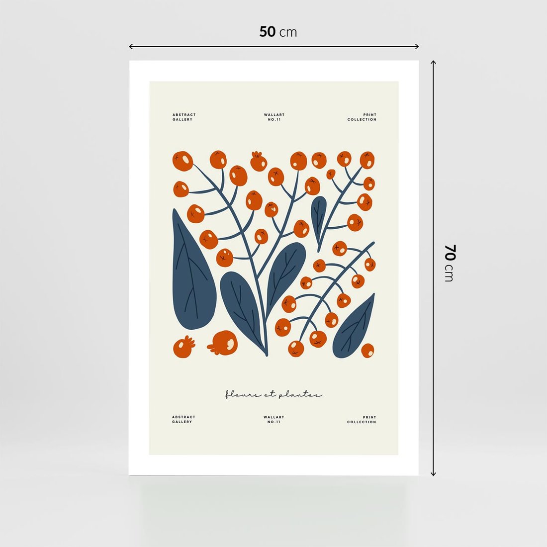Plakat bez ramy 50x70 - Minimalistyczna Uroda Jarzębin - jarzębiny, niebieskie liście