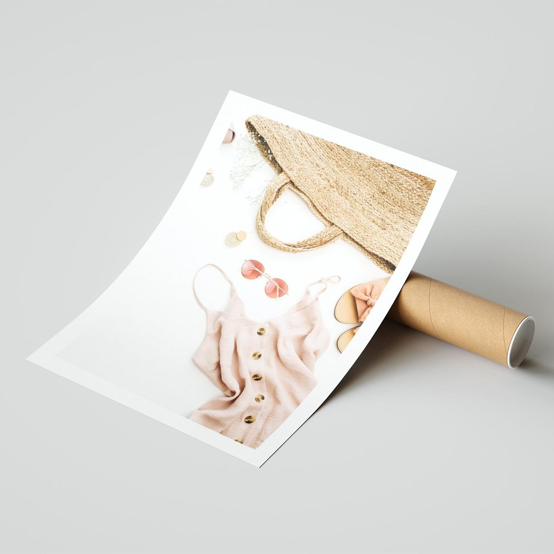 Plakat bez ramy 50x70 - Moda na Plażę - kompozycja fashion, sukienka