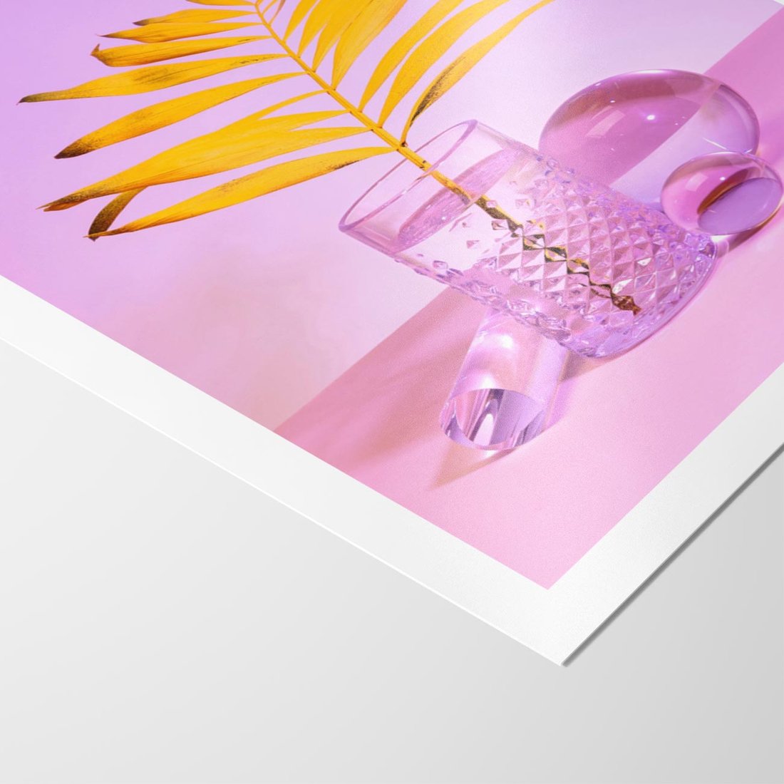 Nasza neonowa fotografia to unikalne połączenie natury i nowoczesnego designu. Neonowe kolory różu i żółtego ożywiają tę kompozycję, która przedstawia delikatny liść palmy w szklance. To dzieło sztuki przynosi tropikalny klimat i świeżość do Twojego wnętrza w nowoczesnym stylu.