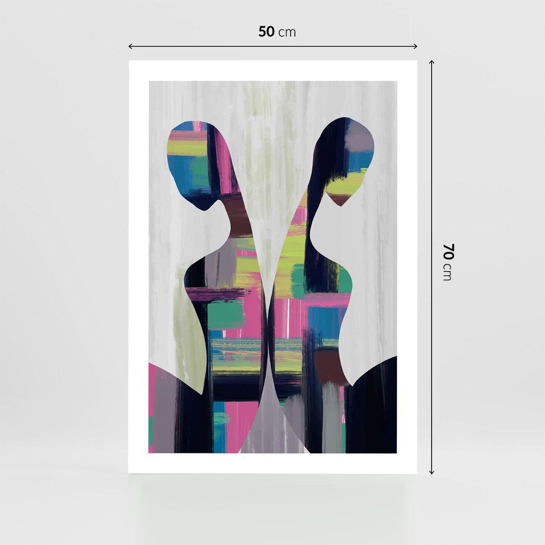 Nasz abstrakcyjny plakat to połączenie nowoczesnej sztuki z sylwetkami ludzi w dynamicznym tańcu kolorów. Intensywne barwy nadają głębi kompozycji, oddając emocje i energię. To idealny dodatek dla miłośników sztuki poszukujących unikalnej dekoracji, która wzbudzi zainteresowanie i ożywi przestrzeń.