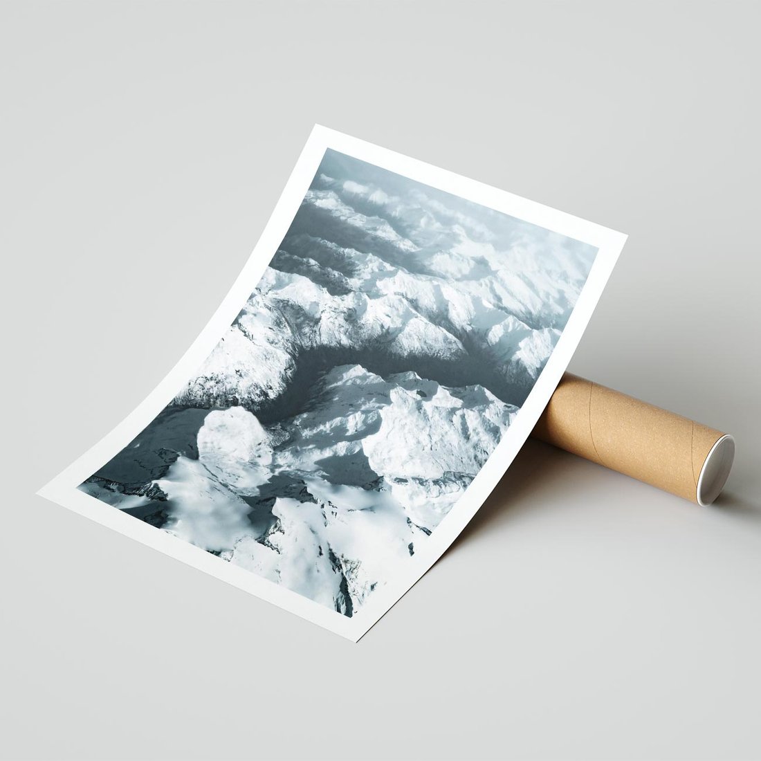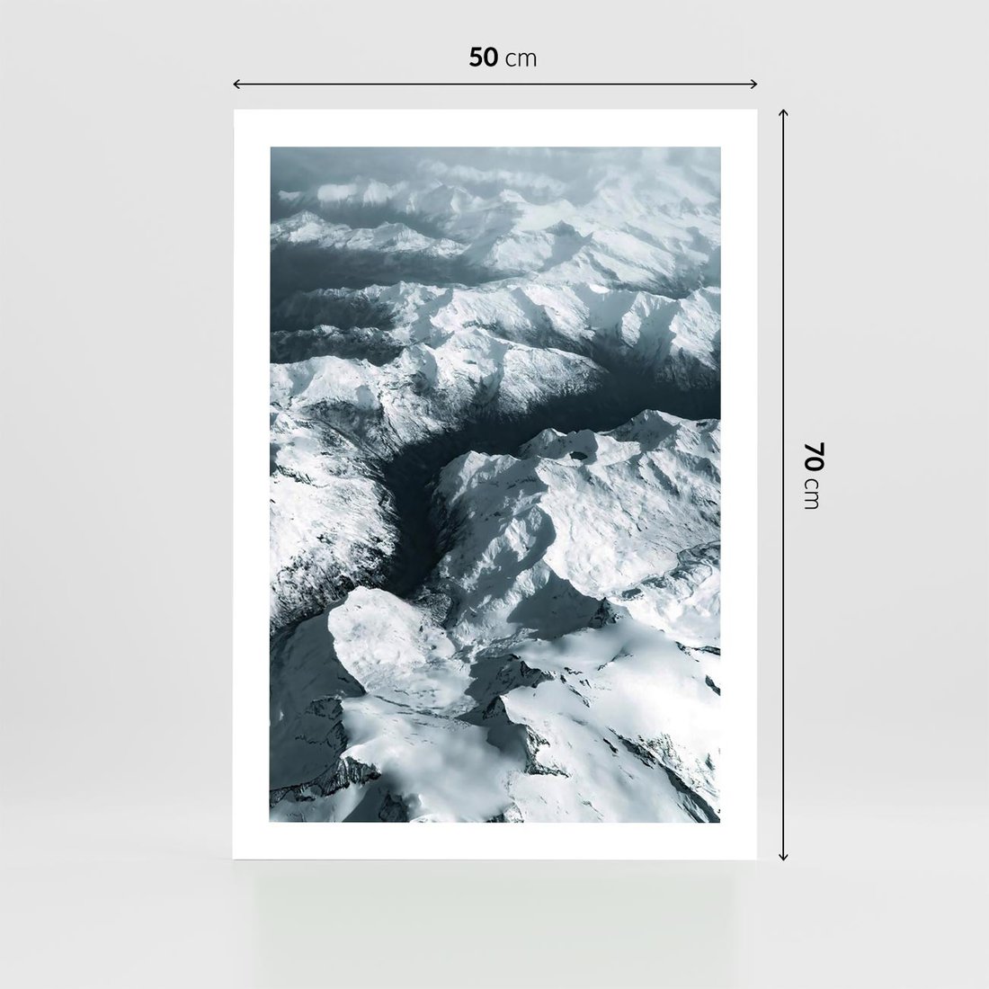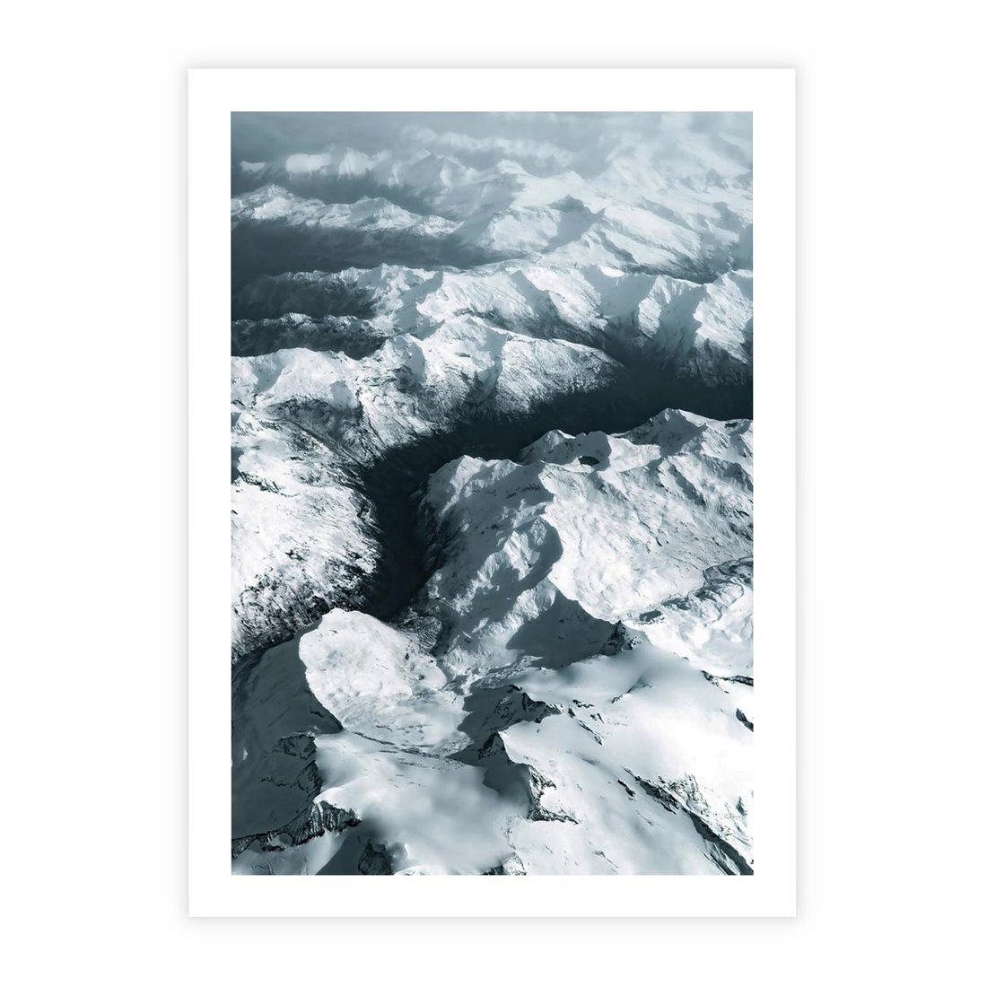 Plakat bez ramy 50x70 - Ośnieżone Szczyty z Wysoka - ośnieżone szczyt górskie, zdjęcie z lotu ptaka