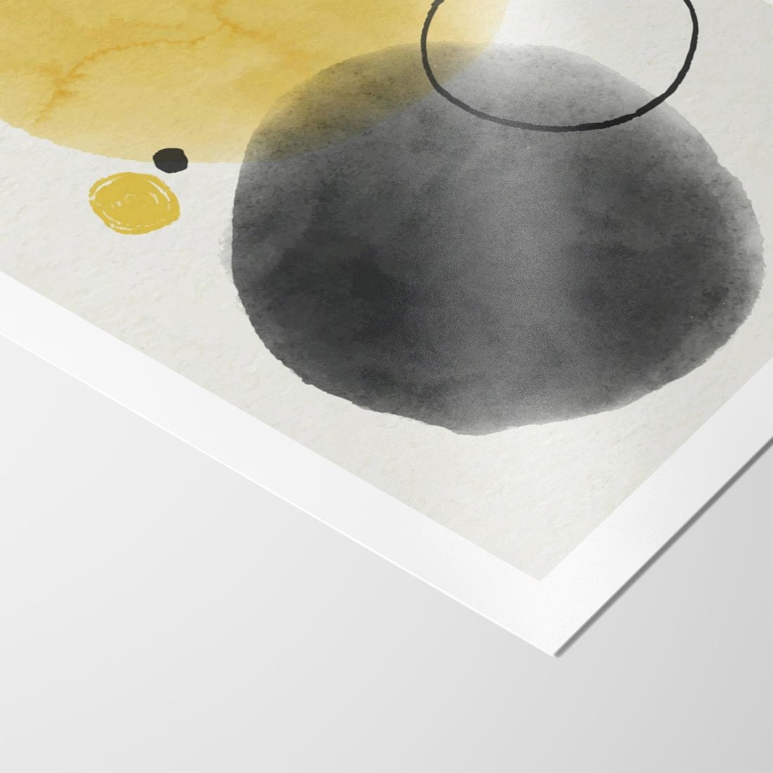 Nasza abstrakcja to zmysłowa kombinacja akwarelowych plam w kontrastujących odcieniach czerni i żółtego. To artystyczne połączenie tworzy fascynujący dialog między kolorami, dodając dynamiczności i głębi do przestrzeni.
