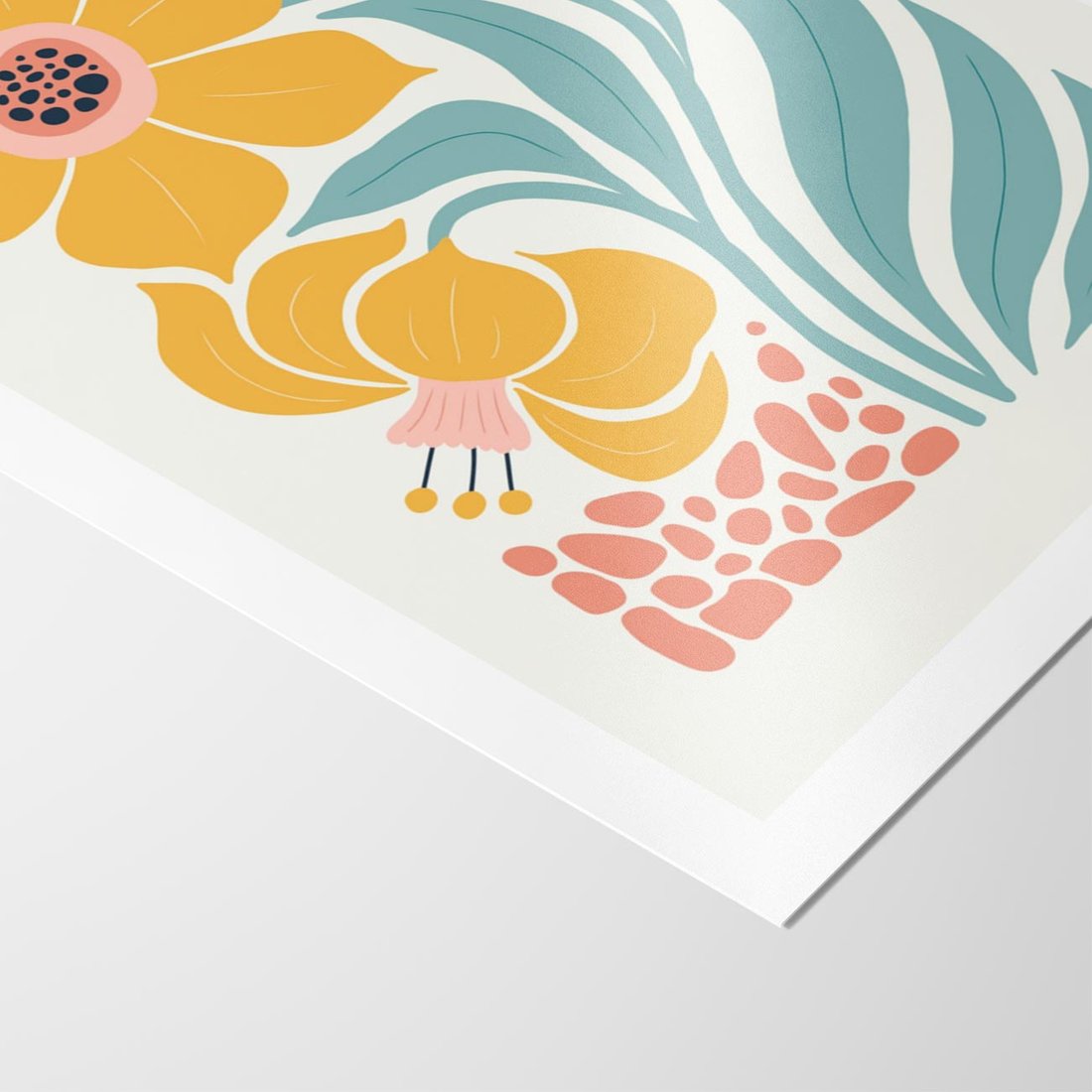Ten nowoczesny plakat łączy kwiatowe motywy z delikatnymi pastelowymi kolorami, tworząc wyjątkową wizję piękna. Sztuka ta wprowadzi subtelność i harmonię do Twojego wnętrza.