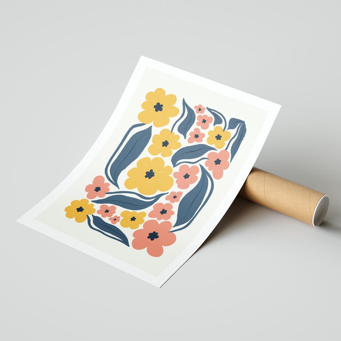 Ten plakat w nowoczesnej sztuce abstrakcji przedstawia pastelowe kwiatowe impresje. Kompozycja tworzy unikalną wizję natury, łącząc delikatność kwiatów z wyrazistą nowoczesnością.