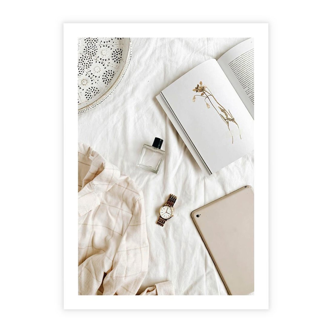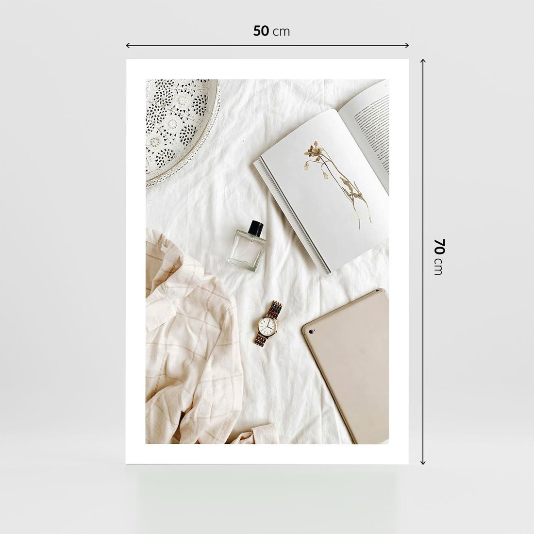 Plakat bez ramy 50x70 - Perfumy, Książka i Moda - kobieca kompozycja, perfumy