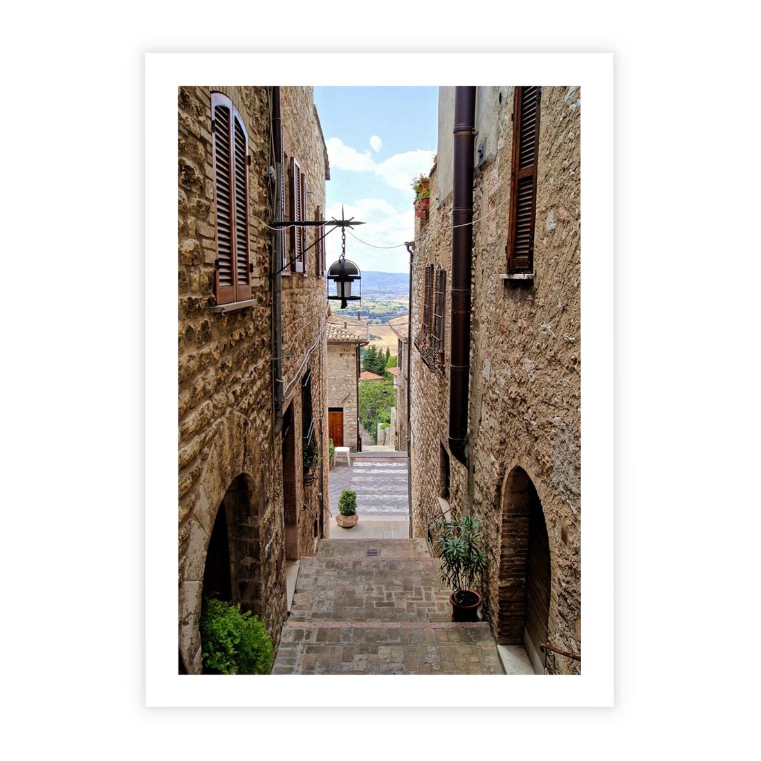 Plakat bez ramy 50x70 - Perspektywa malowniczej uliczki - uliczka, perspektywa