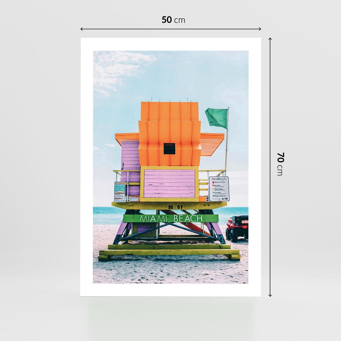 Plakat bez ramy 50x70 - Plaża Miami w Słoneczny Dzień - domek ratownika, kolorowy
