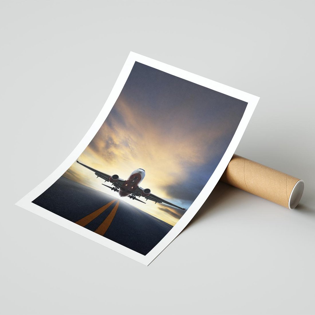 - Plakat bez ramy 50x70 - Podróż samolotem w pejzaż