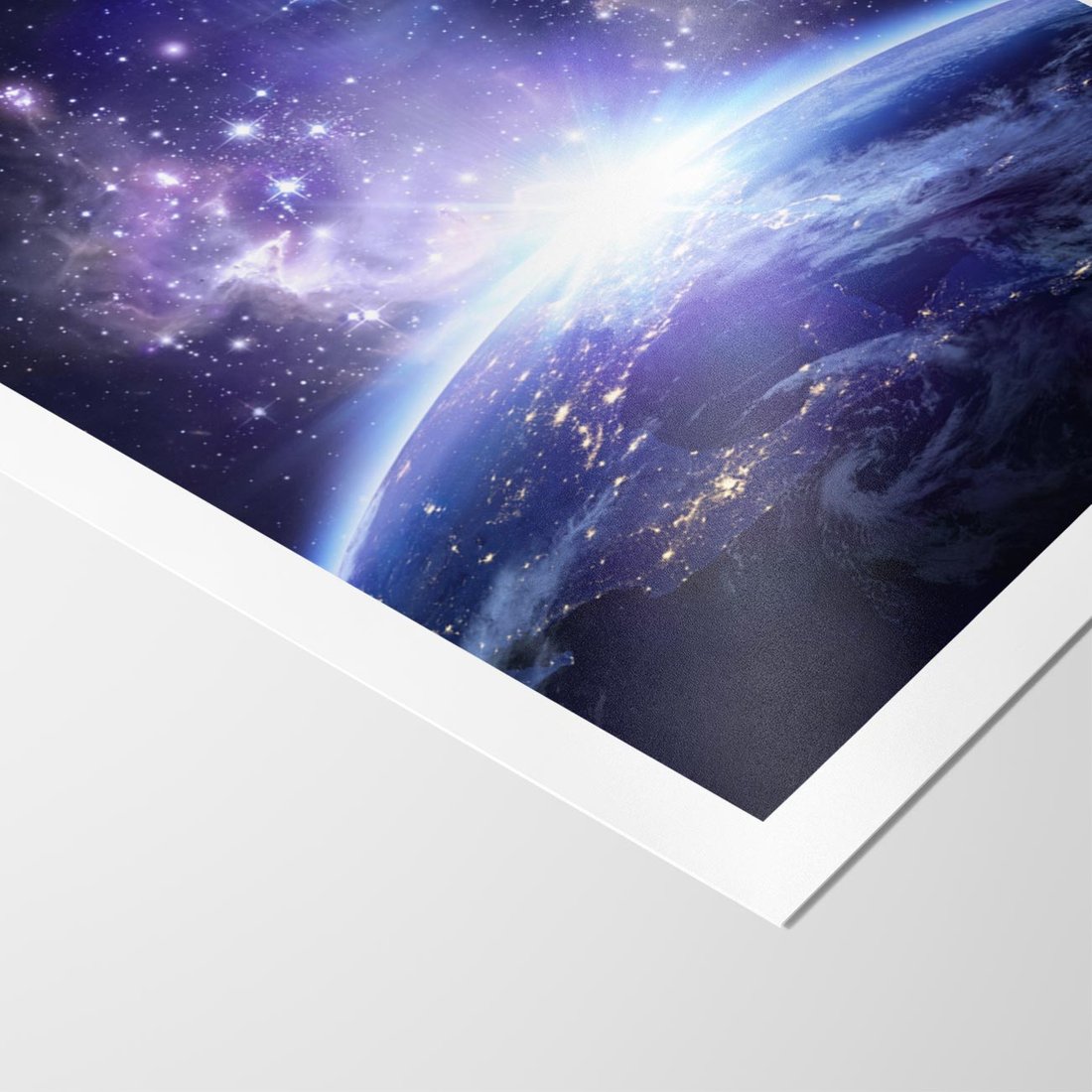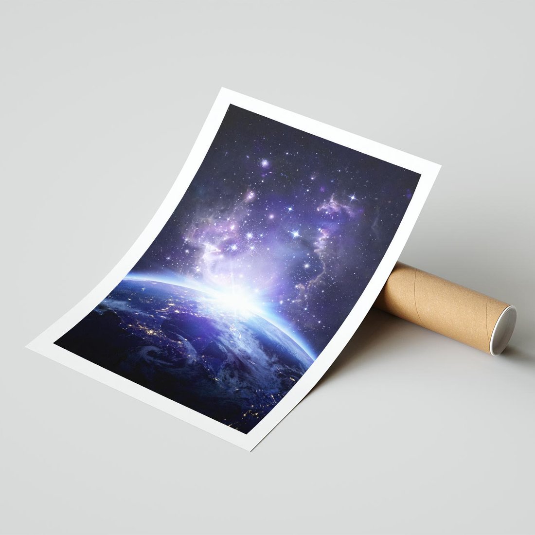 Przenieś się w nieskończoną przestrzeń kosmosu. Ten obraz przedstawia ziemię w otoczeniu gwiazd i tajemniczych galaktyk. Wprowadzi on mistycyzm i fascynację kosmosem do Twojego wnętrza, inspirując do wielkich podróży myślą.