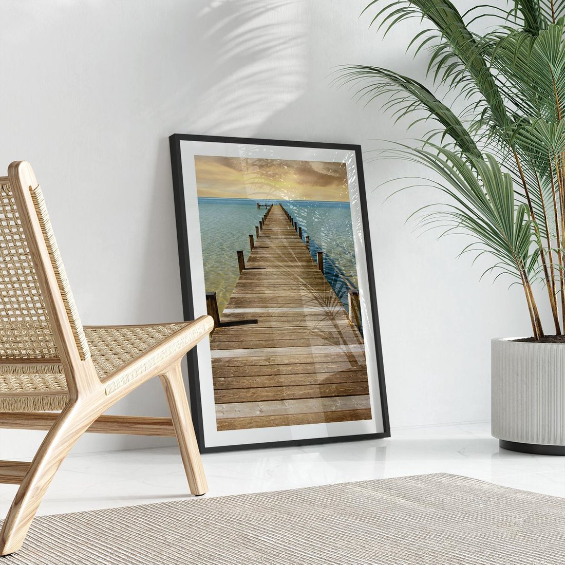 Odkryj magię pomostu prowadzącego w kierunku nieokiełznanego morza. Ten obraz oddaje harmonię między lądem a wodą, wprowadzając spokój i orzeźwienie do Twojego wnętrza. Przenieś się na wybrzeże i poczuj piękno natury w pełni.