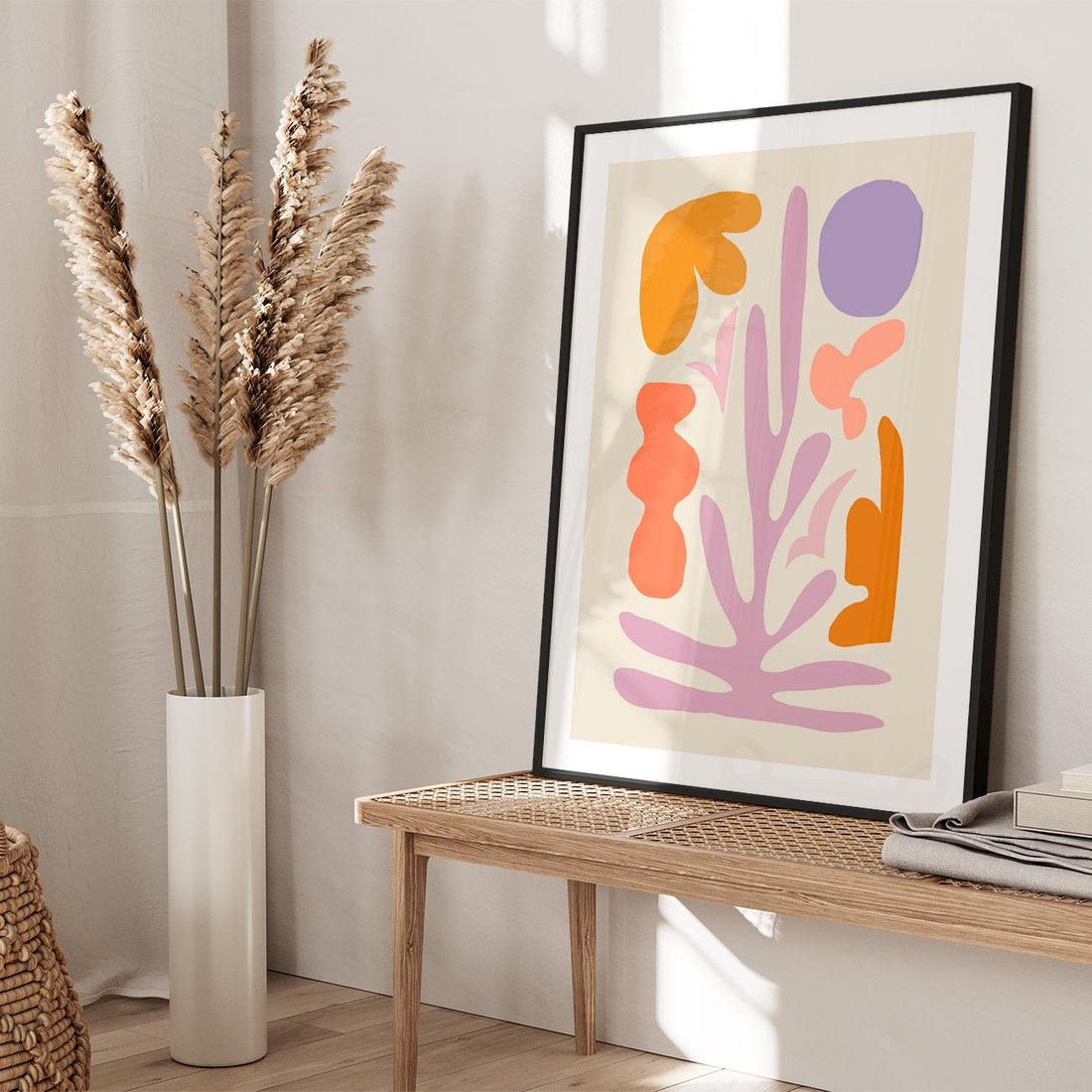 Nasz abstrakcyjny obraz w stylu boho to harmonia pastelowych barw i delikatnych kwiatów. Wyjątkowa kompozycja wzbogaci każde wnętrze o lekkość i naturalny urok. To idealny wybór dla tych, którzy pragną wnieść do swojego otoczenia nutę artystycznego spokoju i piękna.