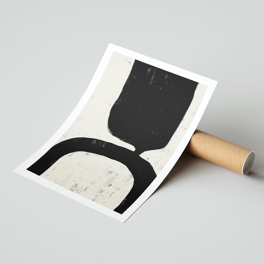 Ta abstrakcyjna sztuka w minimalistycznym stylu skupia się na kontrastach czerni i bieli, tworząc nieregularne kształty, które emanują dramaturgią. To doskonały dodatek do nowoczesnych przestrzeni, zachwycając swoją wyrazistością i subtelnością.