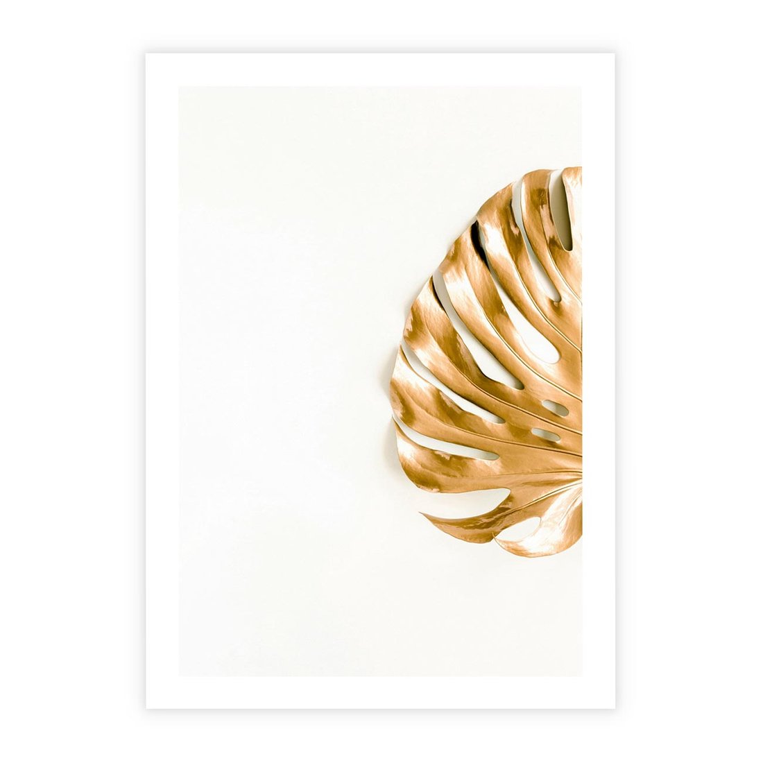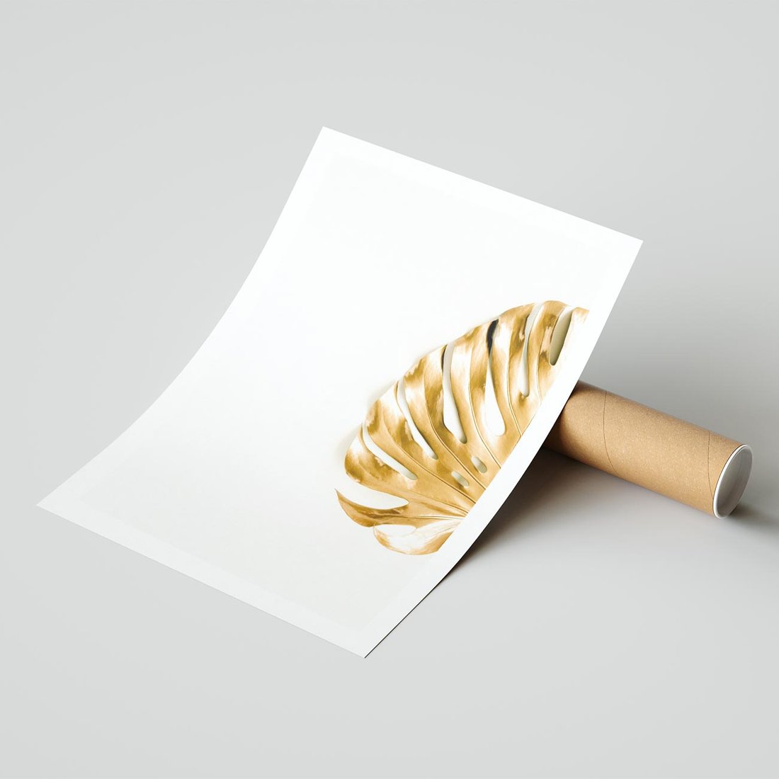 Odkryj piękno i styl złotych liści monstera na obrazie. Dodaj swojemu wnętrzu wyjątkowego uroku i odczuj elegancję, która emanuje z tej minimalistycznej kompozycji.