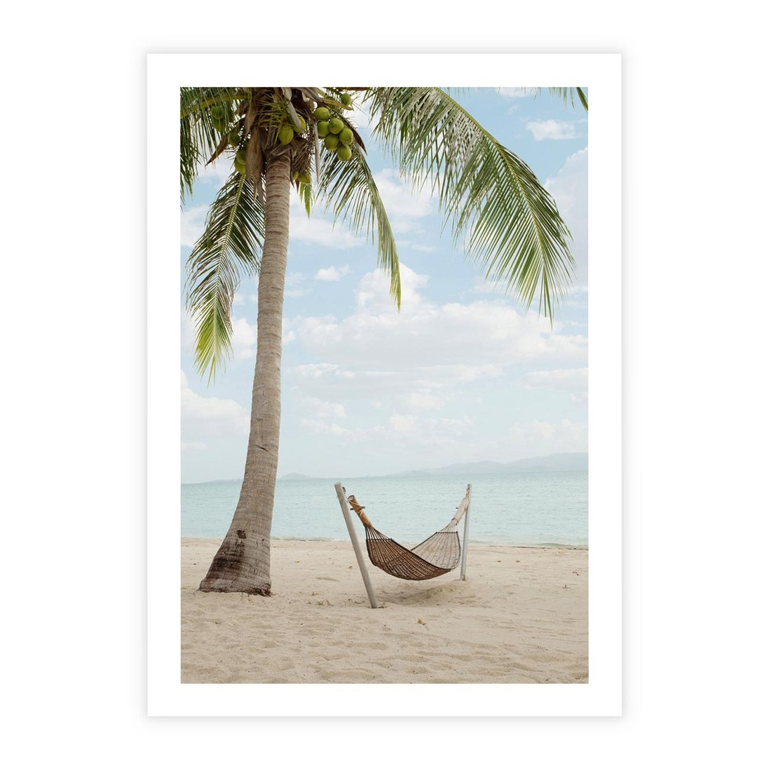 Plakat bez ramy 50x70 - Relaks na plaży - palma, hamak