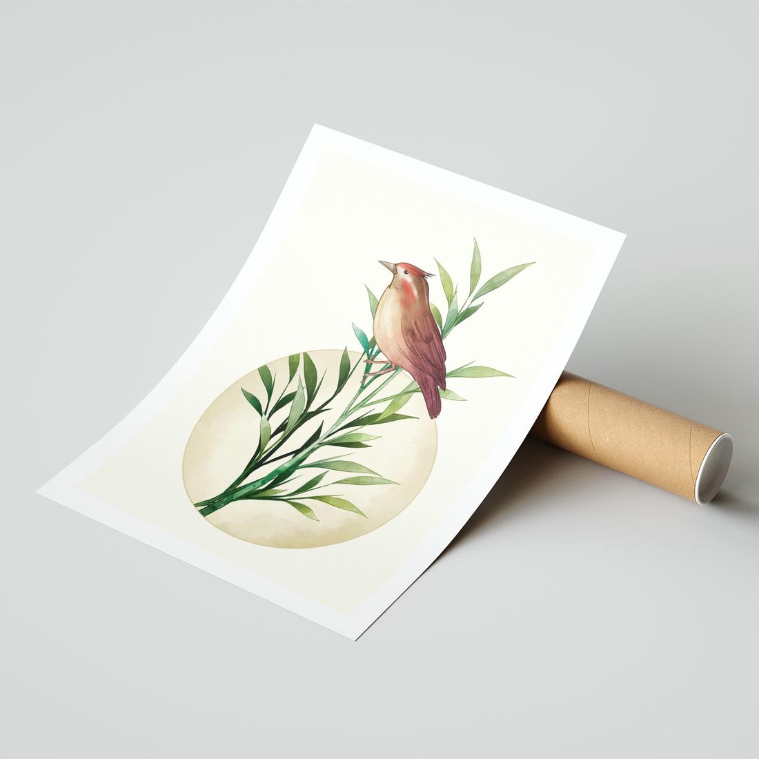 Plakat bez ramy 50x70 - Rozkwitająca Delikatność - japońska sztuka, ptak