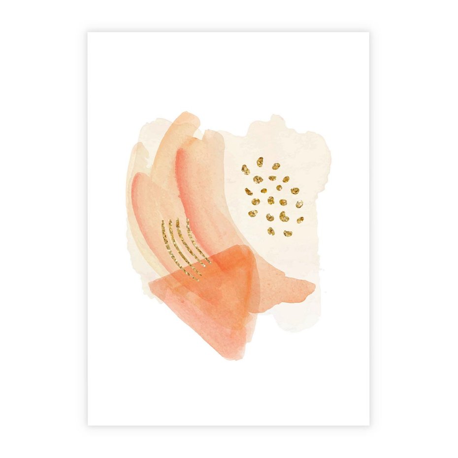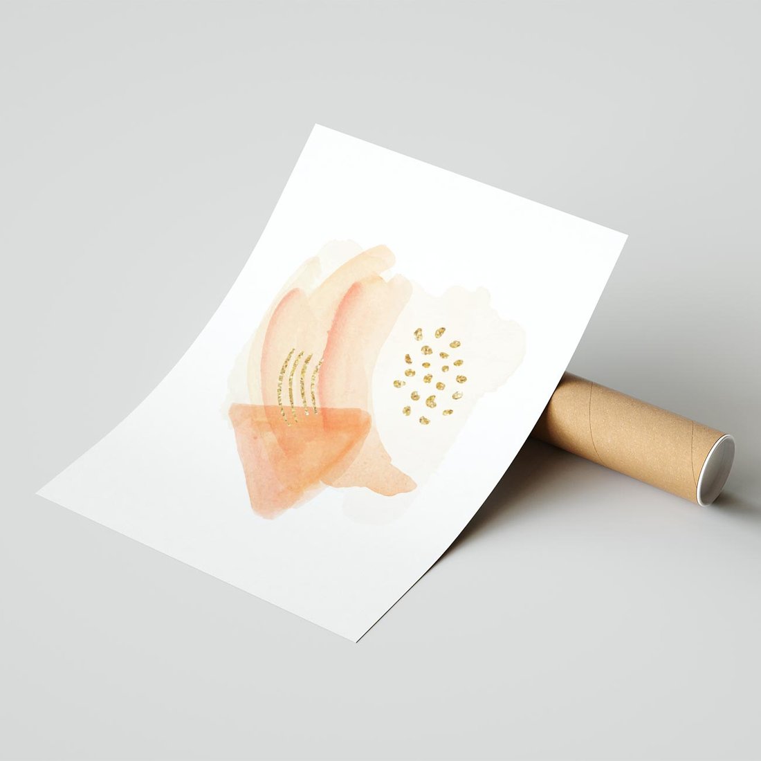 Abstrakcyjne akwarelowe plamy w minimalistycznym stylu. Subtelne pastele z nutą złotych elementów tworzą spokojną i wyrafinowaną kompozycję.