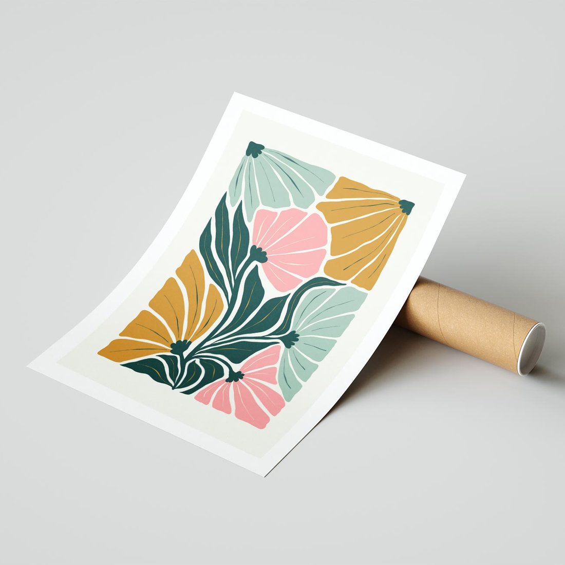 Plakat bez ramy 50x70 - Rozplątane Myśli - abstrakcyjna kompozycja, pastelowe kwiaty