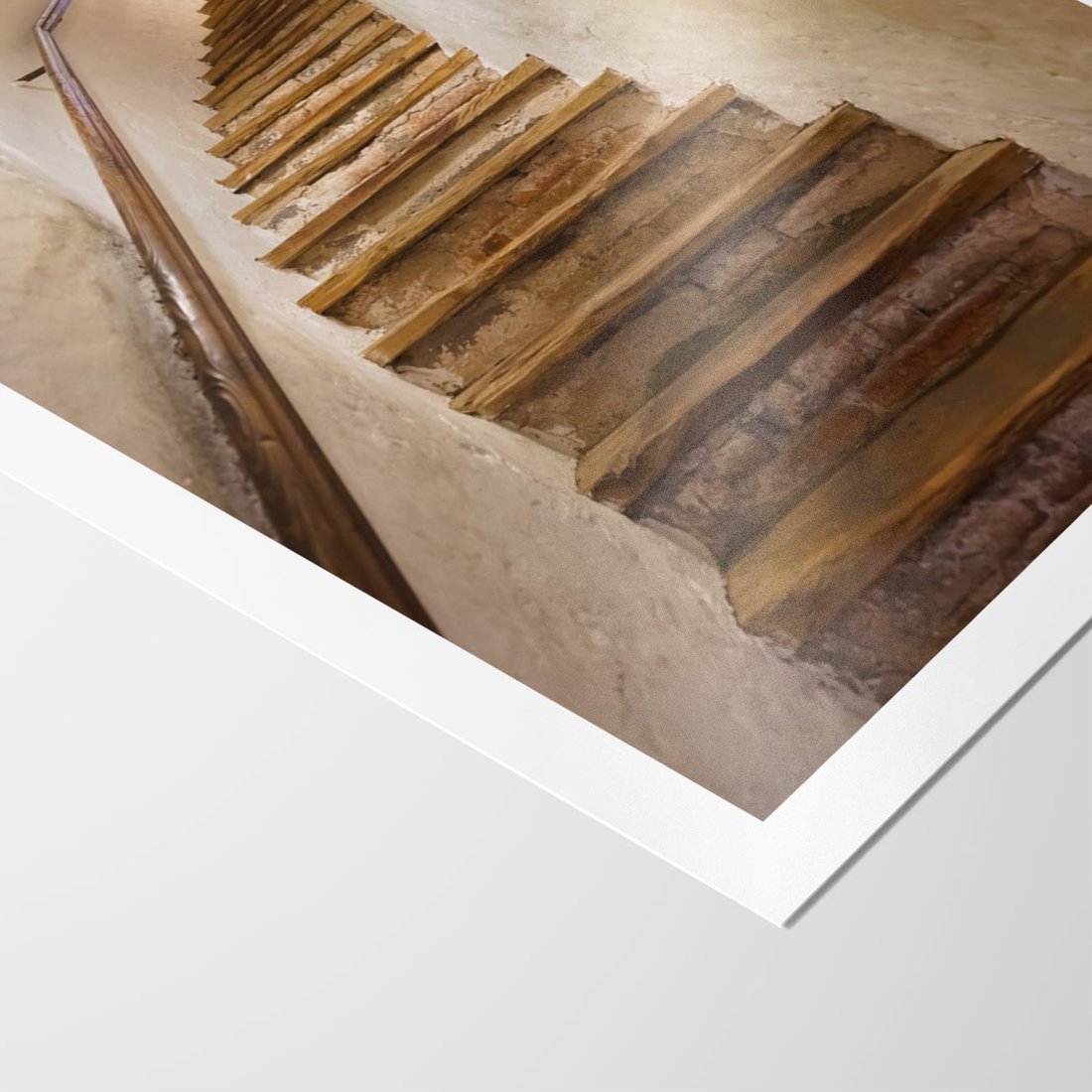 Odkryj fascynujący tunel schodów na tym zaskakującym obrazie. Jego perspektywa i kontrastujące światła tworzą aurę tajemniczości i głębi. Ta kompozycja dodaje dynamiki i perspektywy, idealna dla miłośników abstrakcji i zagadkowych kompozycji.