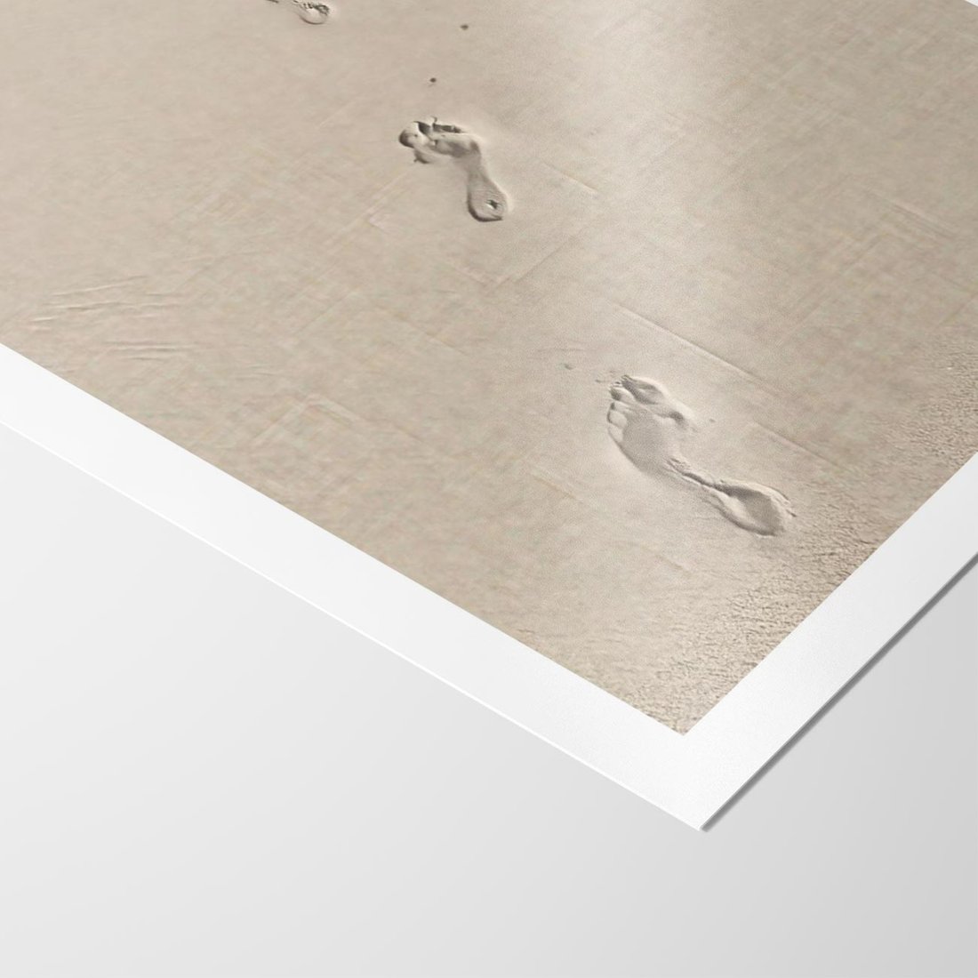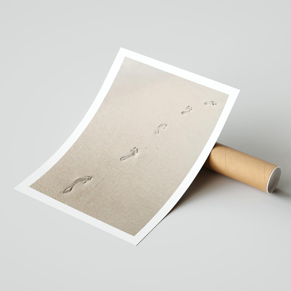 Plakat bez ramy 50x70 - Ślady na Złocistym Piasku - piasek, ślady stóp na piasku