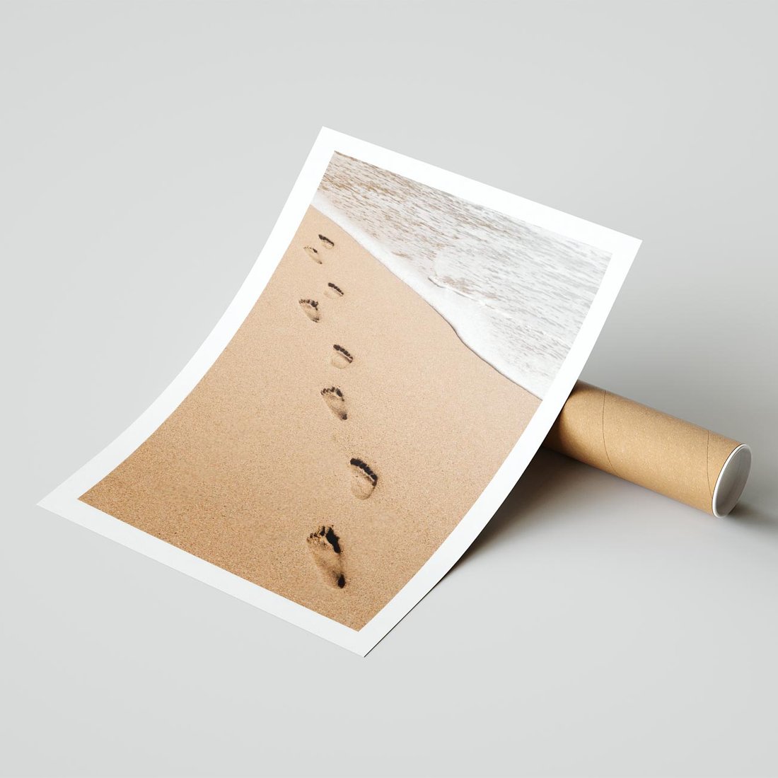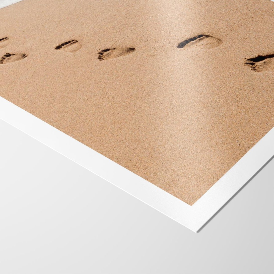 Plakat bez ramy 50x70 - Ślady Stóp na Plaży: Spacer nad Morzem - plaża, ślady stóp na piasku