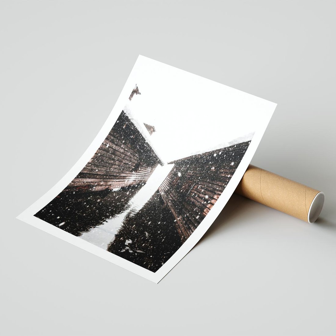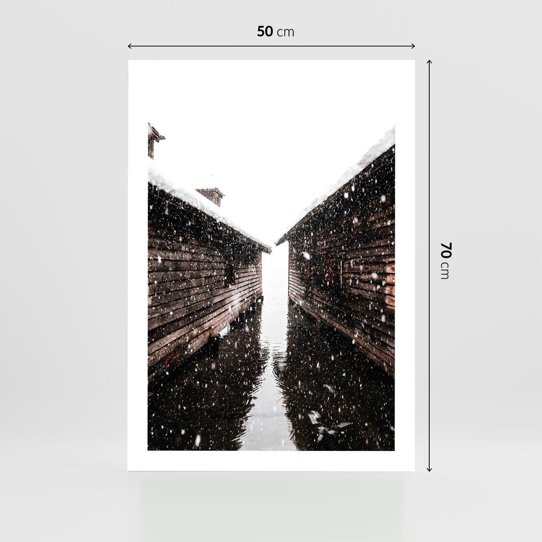 Plakat bez ramy 50x70 - Spadający Śnieg - domek górski, w zimie