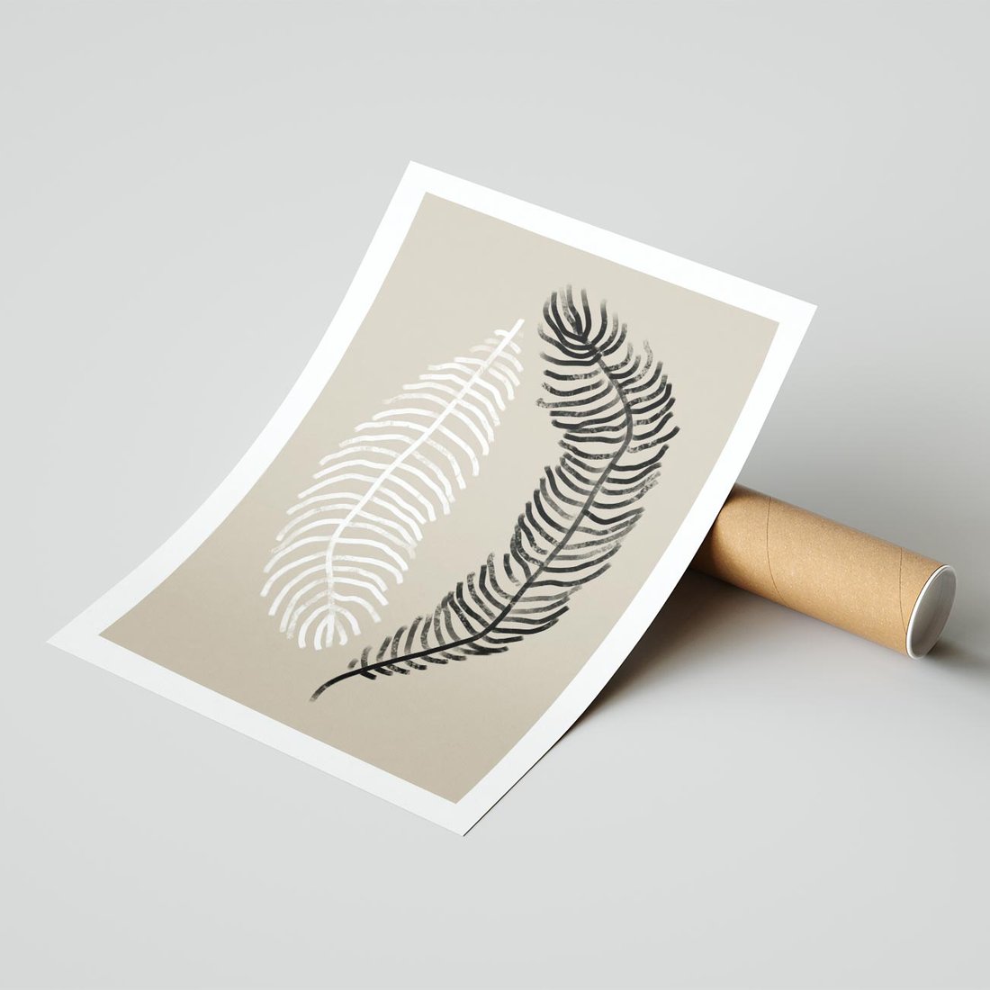 Plakat bez ramy 50x70 - Spleciona Harmonia - sztuka nowoczesna, białe i czarne pióro
