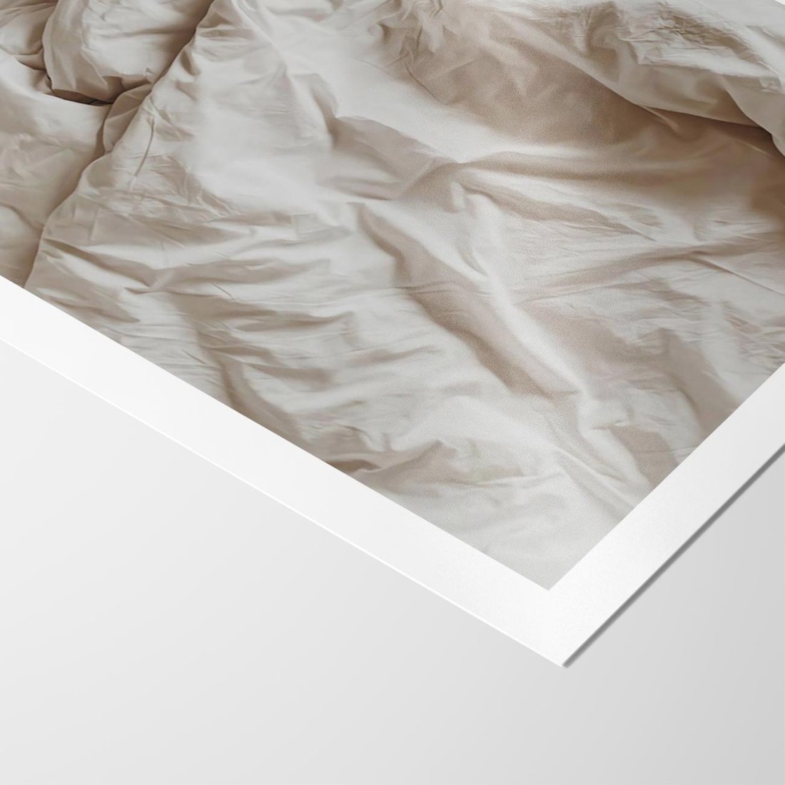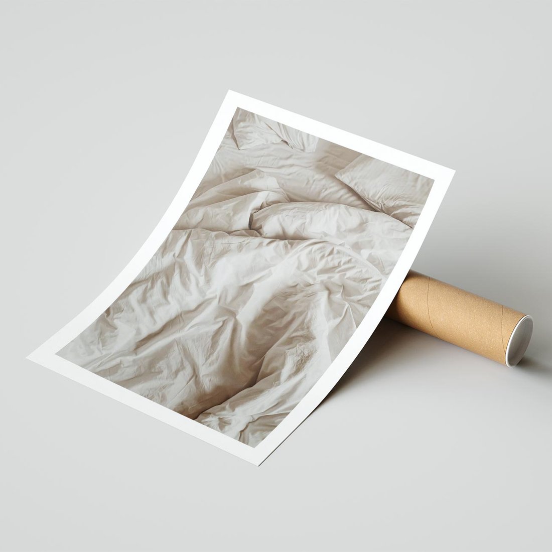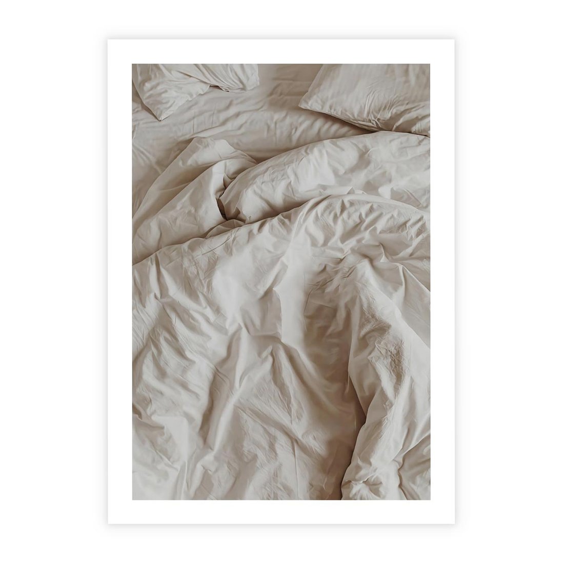 Plakat bez ramy 50x70 - Spokojna Noc - biała pościel, zdjęcie do sypialni