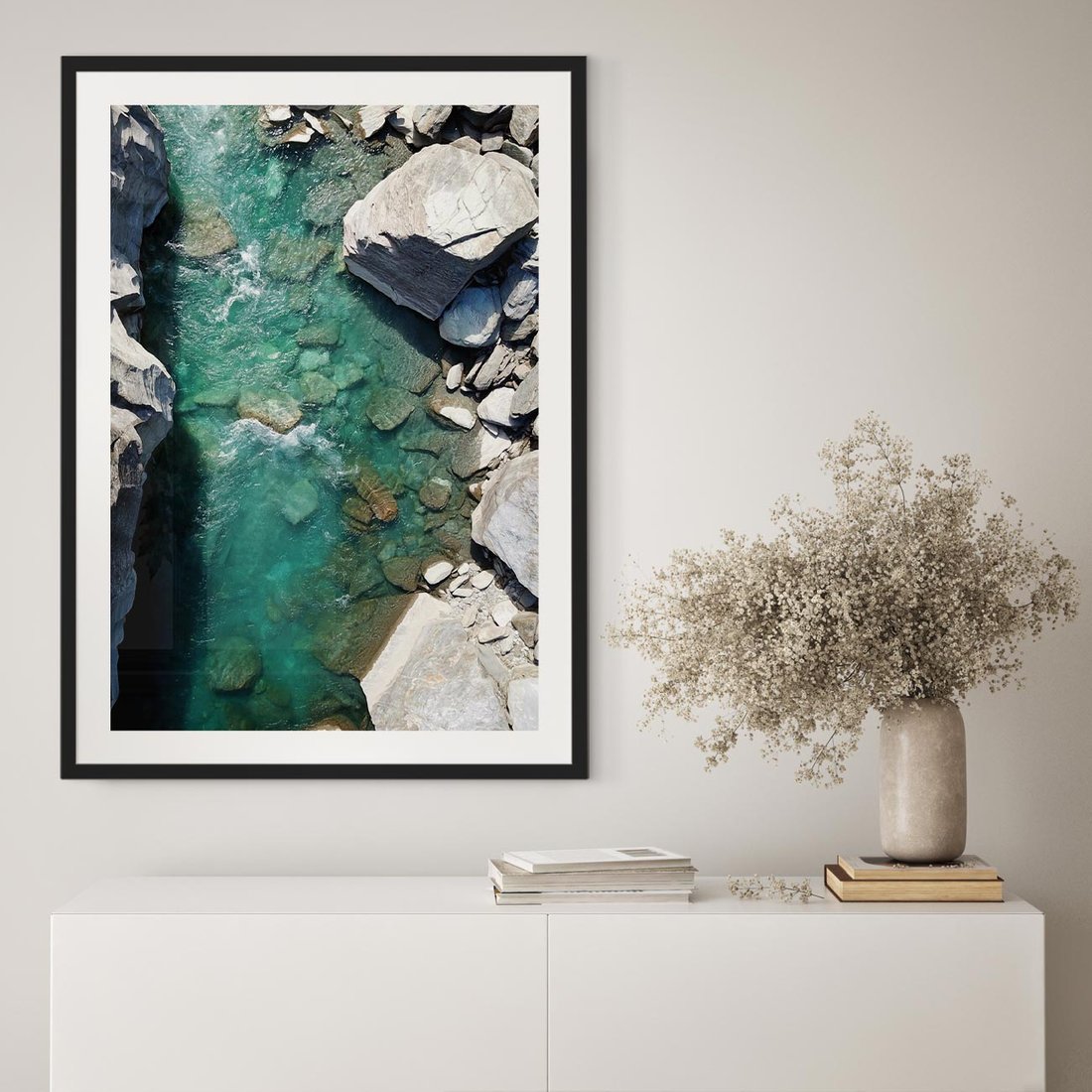 Plakat bez ramy 50x70 - Spotkanie natury i siły - rzeka, skały