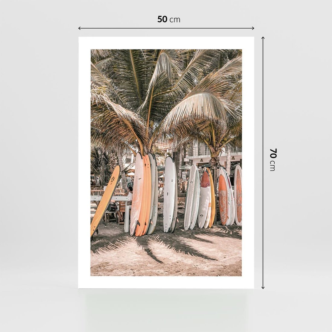 Plakat bez ramy 50x70 - Surfingowy Raj - deski surfingowe, na plaży
