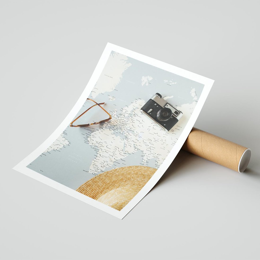 Plakat bez ramy 50x70 - Świat w Kadrze - mapa, aparat