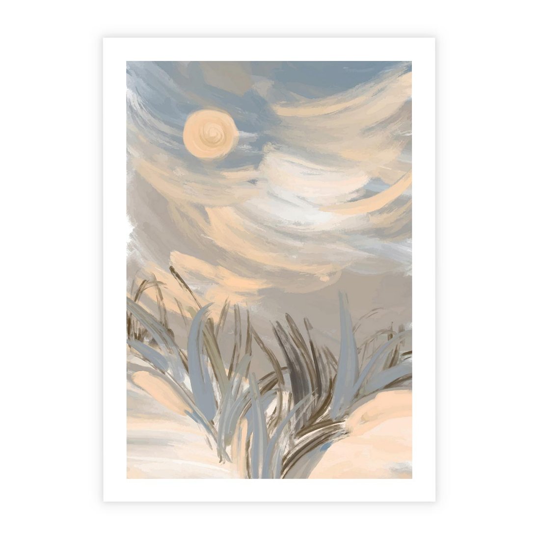 Nasz obraz wykonany techniką akwareli ukazuje delikatne trawy przed wschodem słońca. Ta subtelna kompozycja przynosi do wnętrza spokój i harmonię, oddając piękno natury w delikatnych barwach. To dzieło sztuki, które wprowadza magiczną atmosferę do przestrzeni, idealne dla tych, którzy cenią siłę wyrazu w prostocie pejzażu.