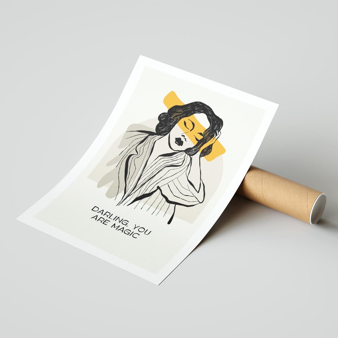 Nasza nowoczesna grafika to połączenie sztuki, elegancji i siły kobiecej osobowości. Ta kompozycja przedstawia abstrakcyjną sylwetkę kobiety w towarzystwie stylowej typografii, co tworzy unikalny i nowoczesny obraz. To idealna dekoracja, aby wyrazić szacunek dla kobiecej siły i wyrafinowanego designu.