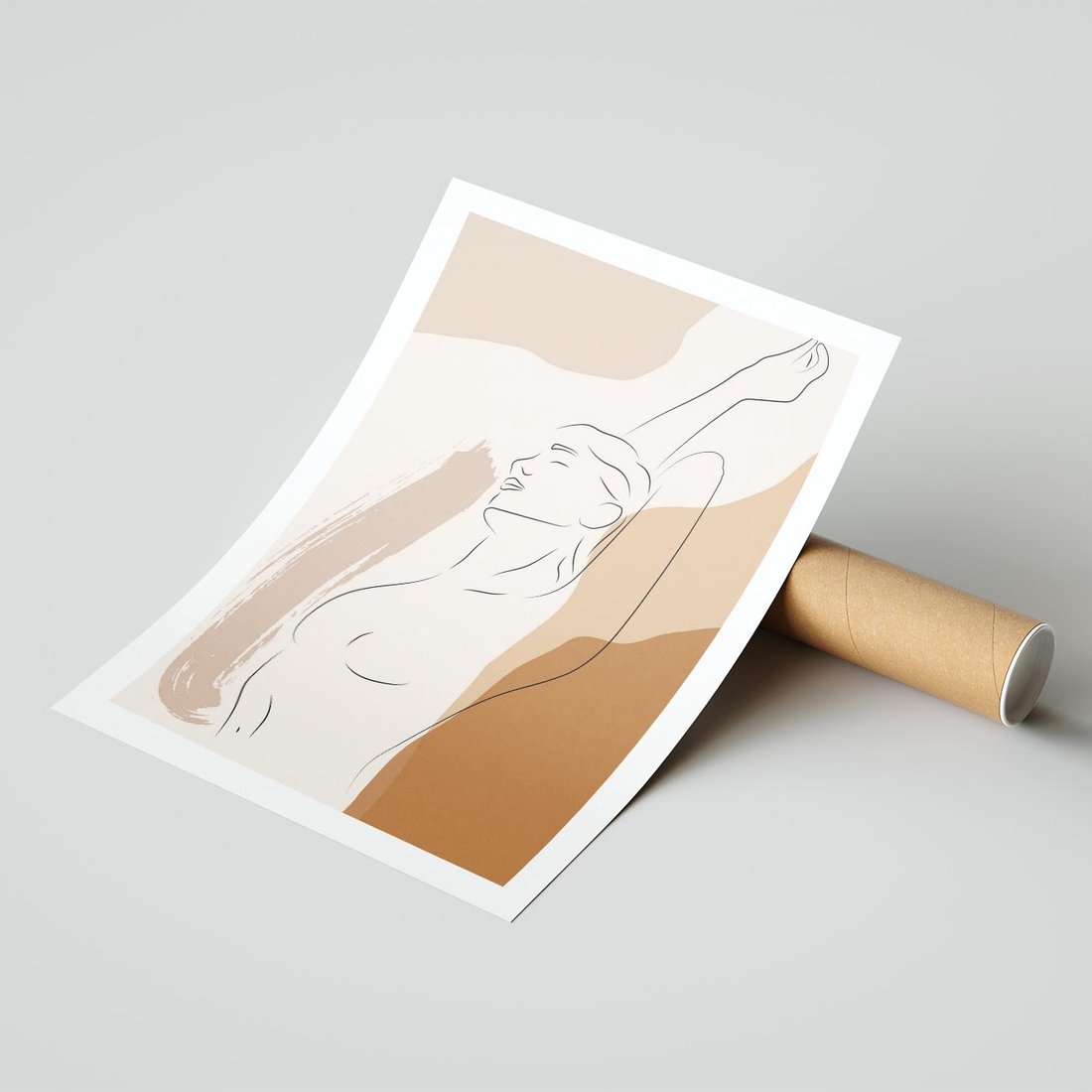 Plakat bez ramy 50x70 - Sztuka Nagiej Formy - szkic nagiej kobiety, kolory beżowe