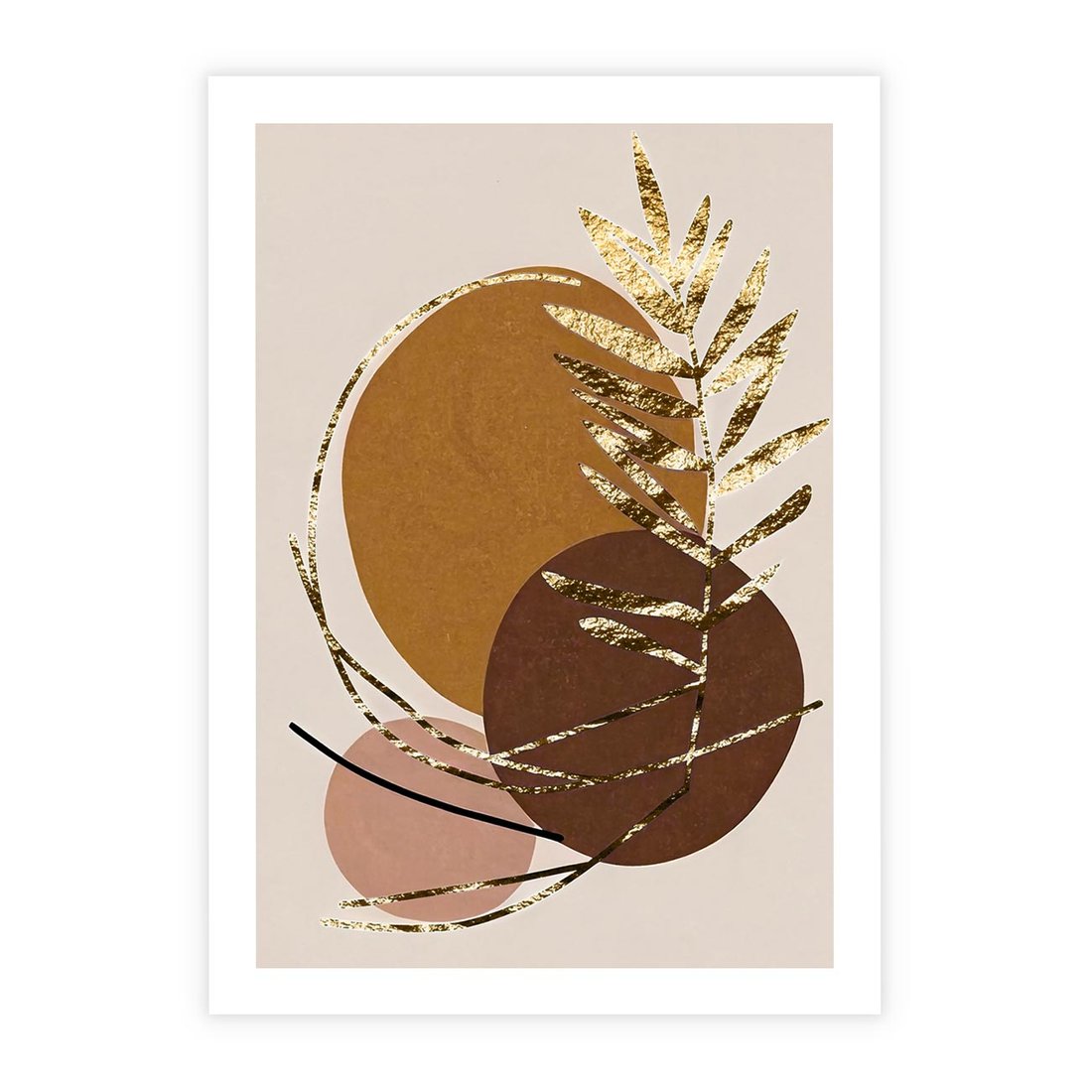 Plakat bez ramy 50x70 - Taniec Przenikających Odbić - abstrakcyjny obraz, złote liście palmy