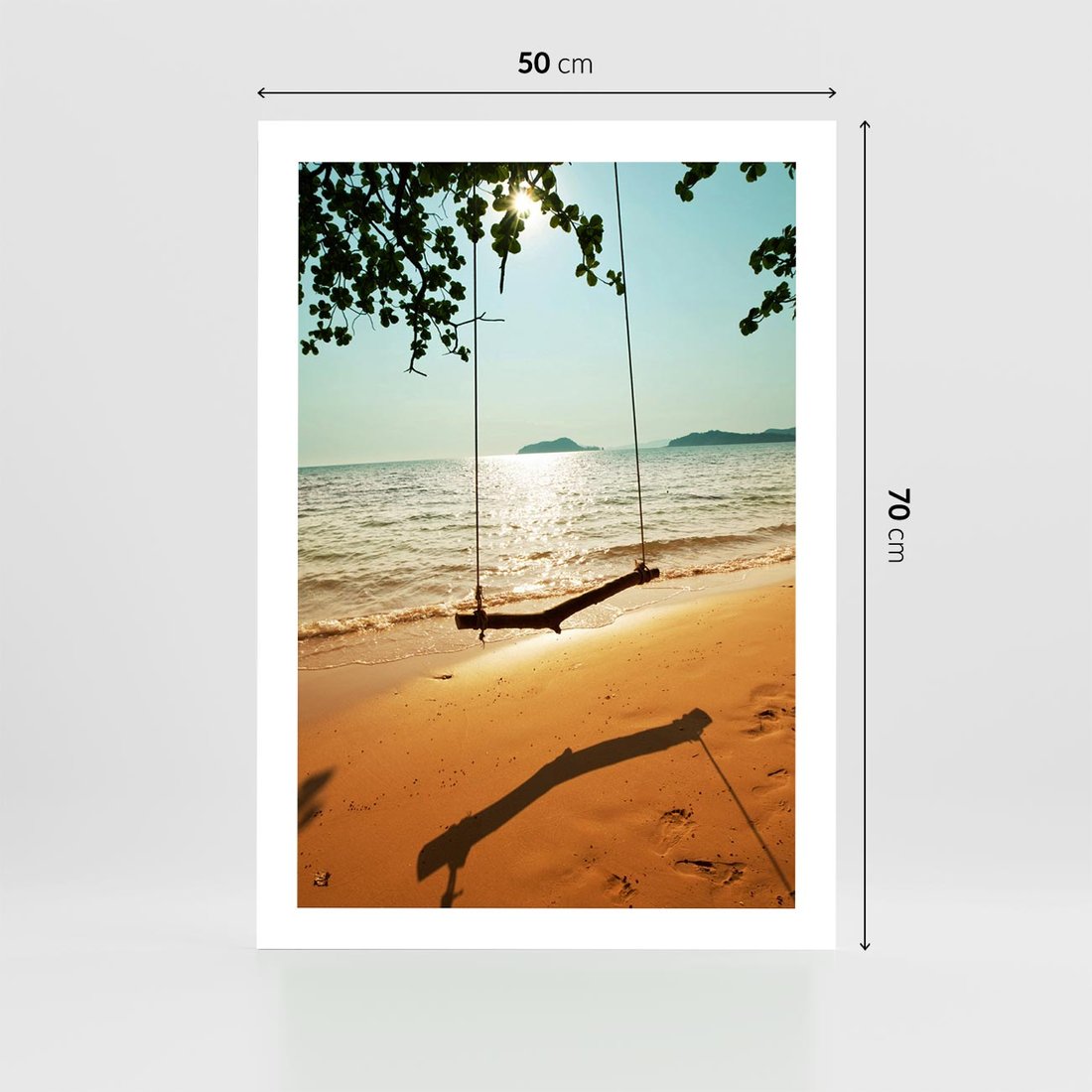 - Plakat bez ramy 50x70 - Tropikalna plaża i huśtawka