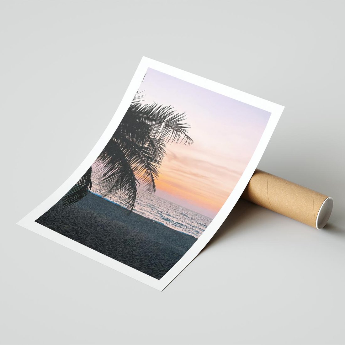 Plakat bez ramy 50x70 - Tropikalny Zachód Słońca: Piękno Palmy - palma, nad morzem