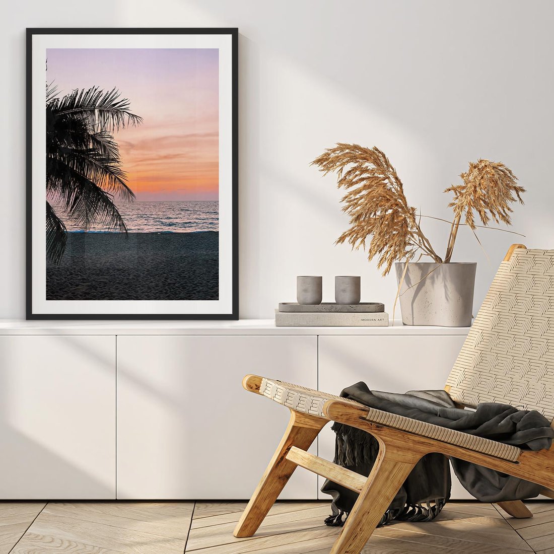 - Plakat bez ramy 50x70 - Tropikalny Zachód Słońca: Piękno Palmy