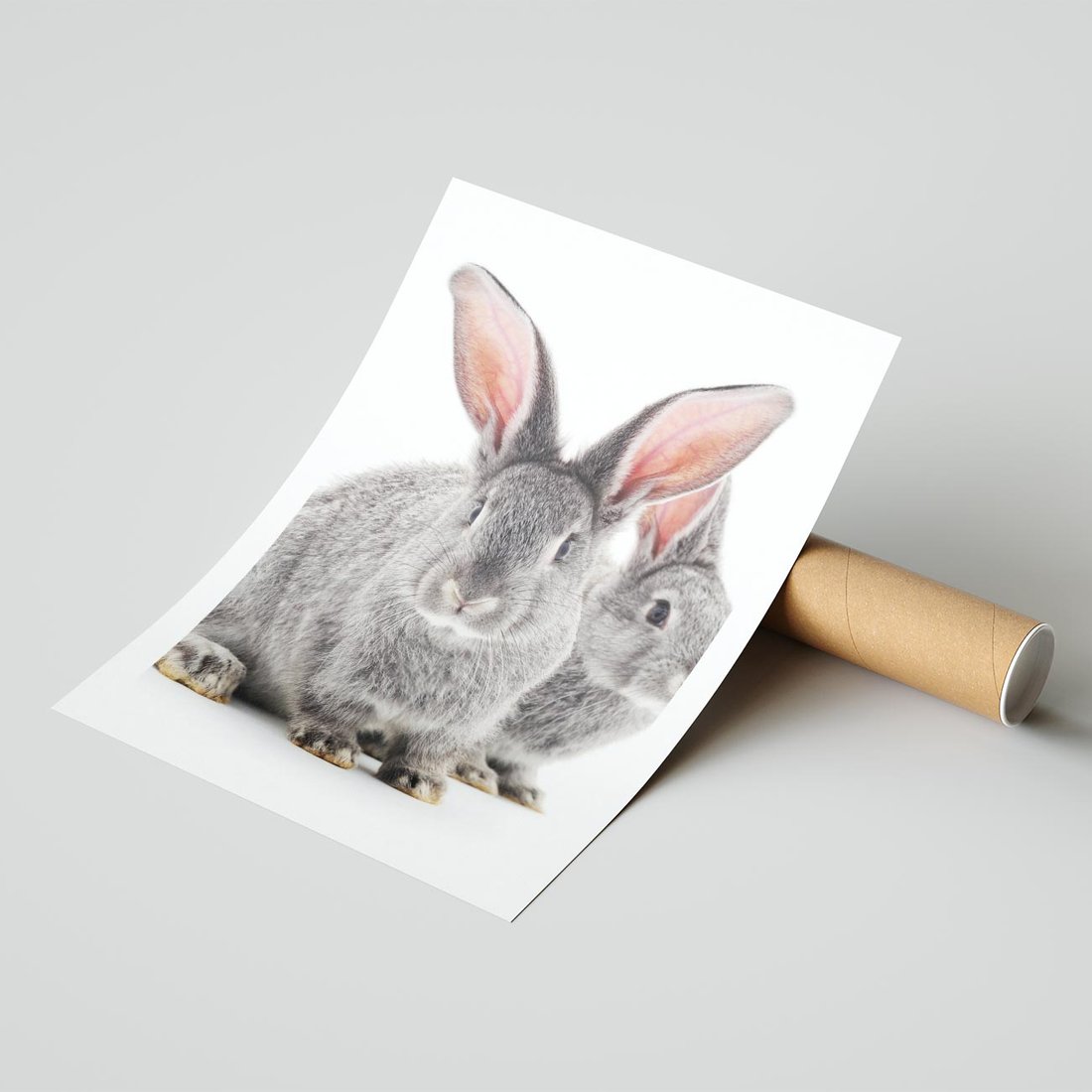 Odkryj urok królika w naturalnym otoczeniu dzięki temu uroczemu obrazowi. Z bujną roślinnością i czułym nastrojem, ożywia przestrzeń. Ta kompozycja dodaje czułości i harmonii, idealna dla miłośników zwierząt i przyrody.